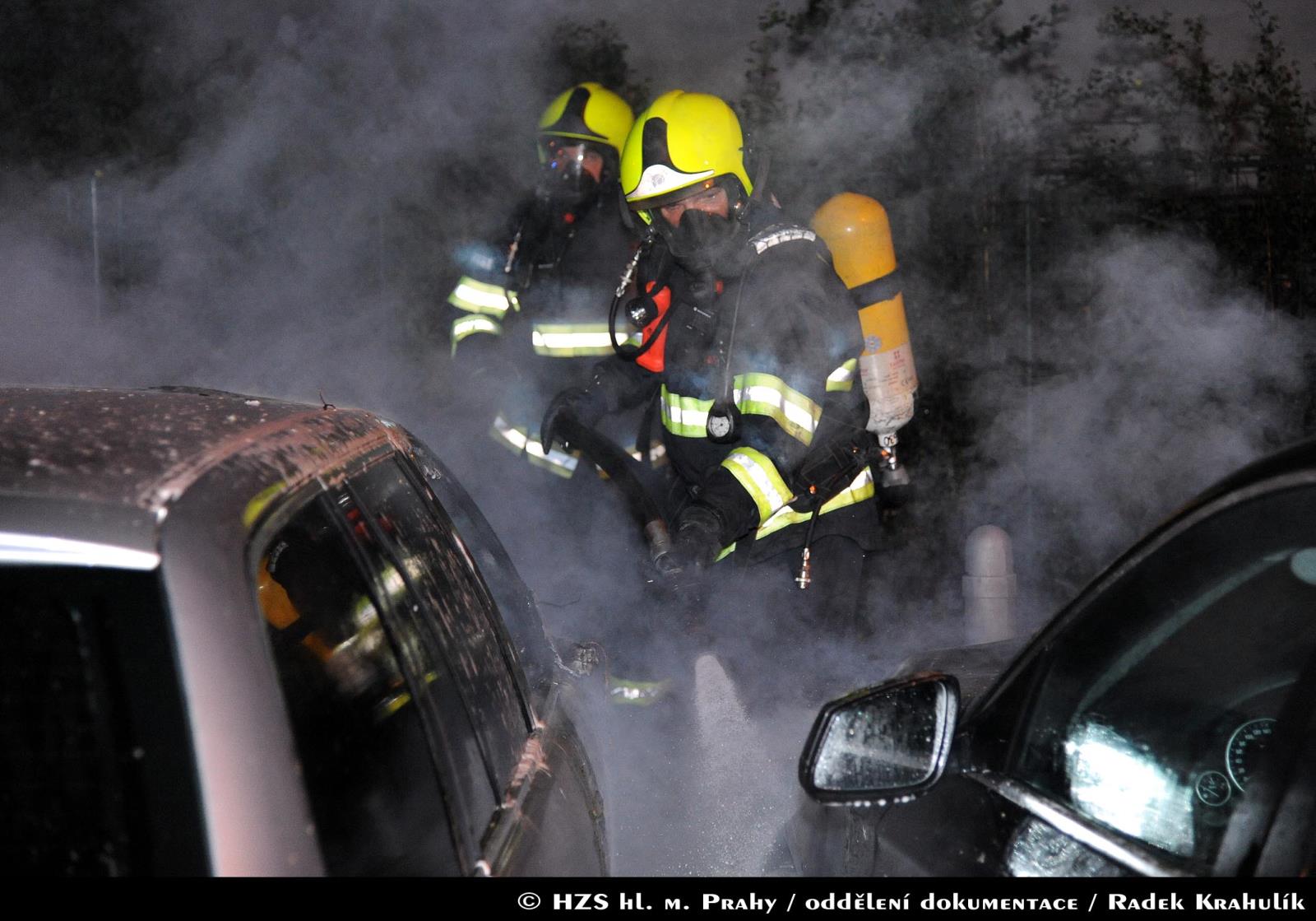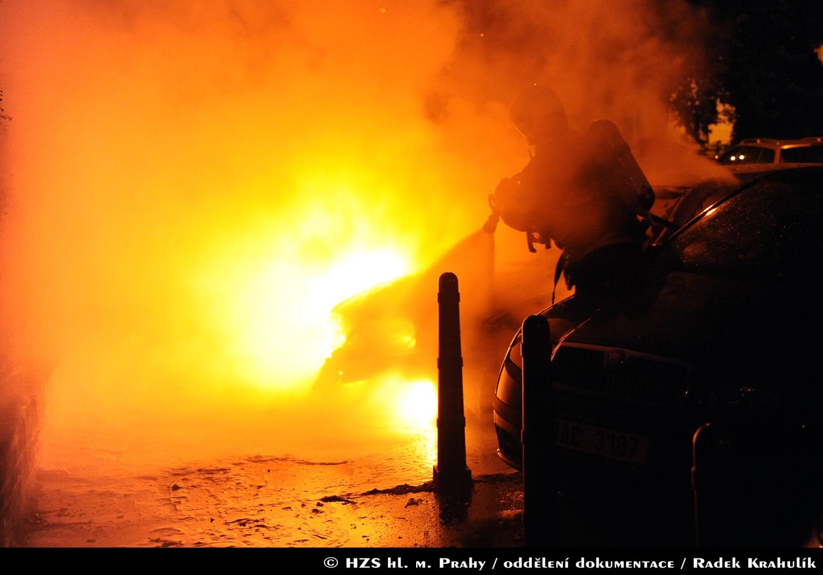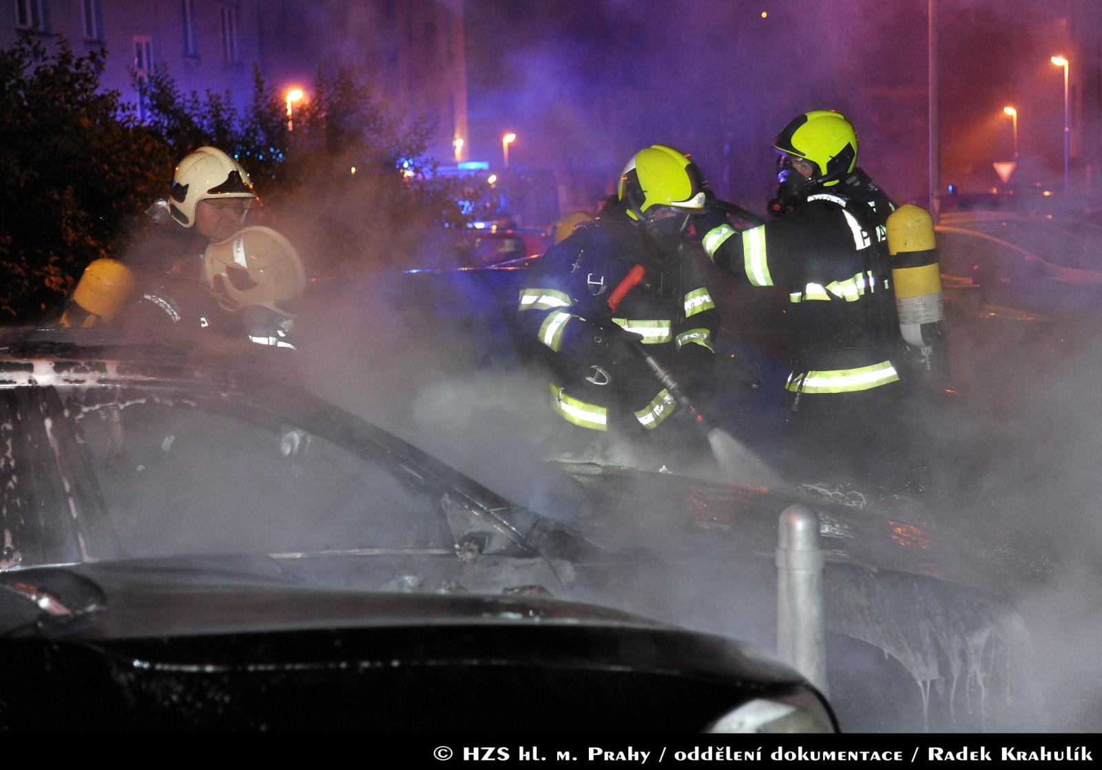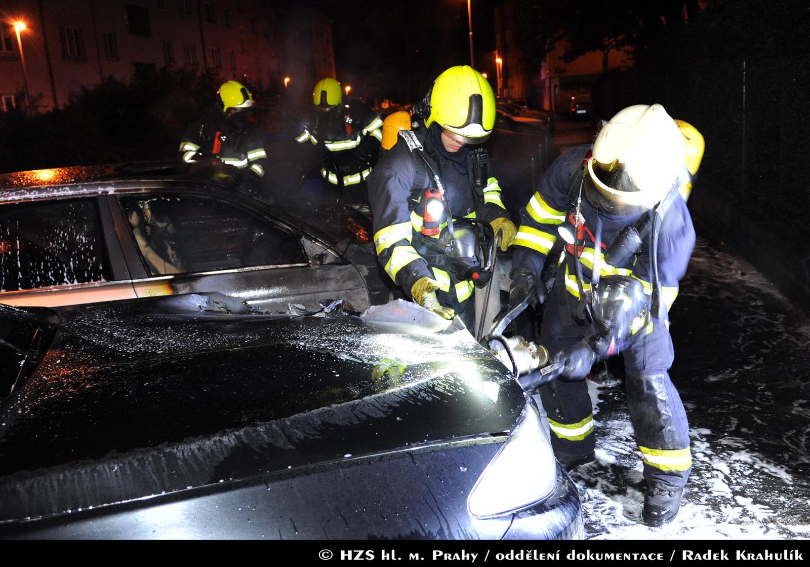 Hasiči z centrální stanice zasahovali 27.06.2017 od 02:20 hodin u požáru dvou osobních vozidel v ulici Viktorinova v Praze 4. Tlakovou vodou museli likvidovat plameny v motorové části jednoho z vozidel, od kterého došlo k rozšíření požáru na další tři automobily.