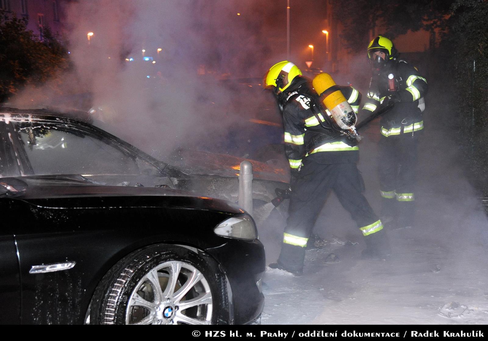 V Nuslích dnes v noci hořel osobní automobil, od kterého se požár rozšířil na další tři automobily