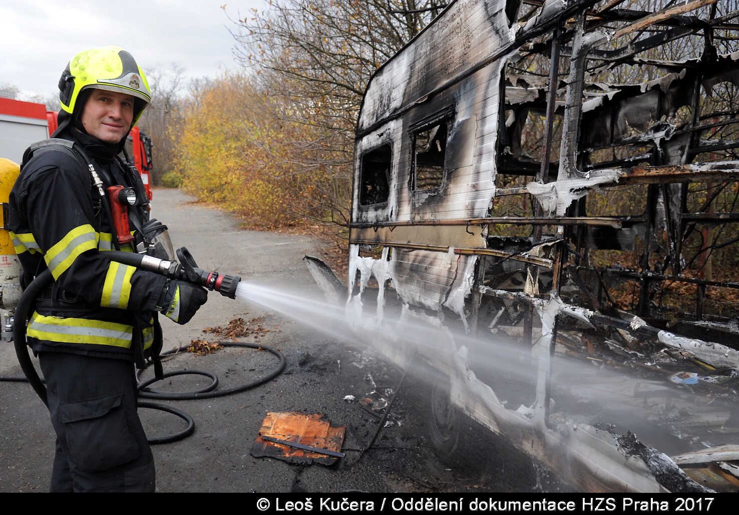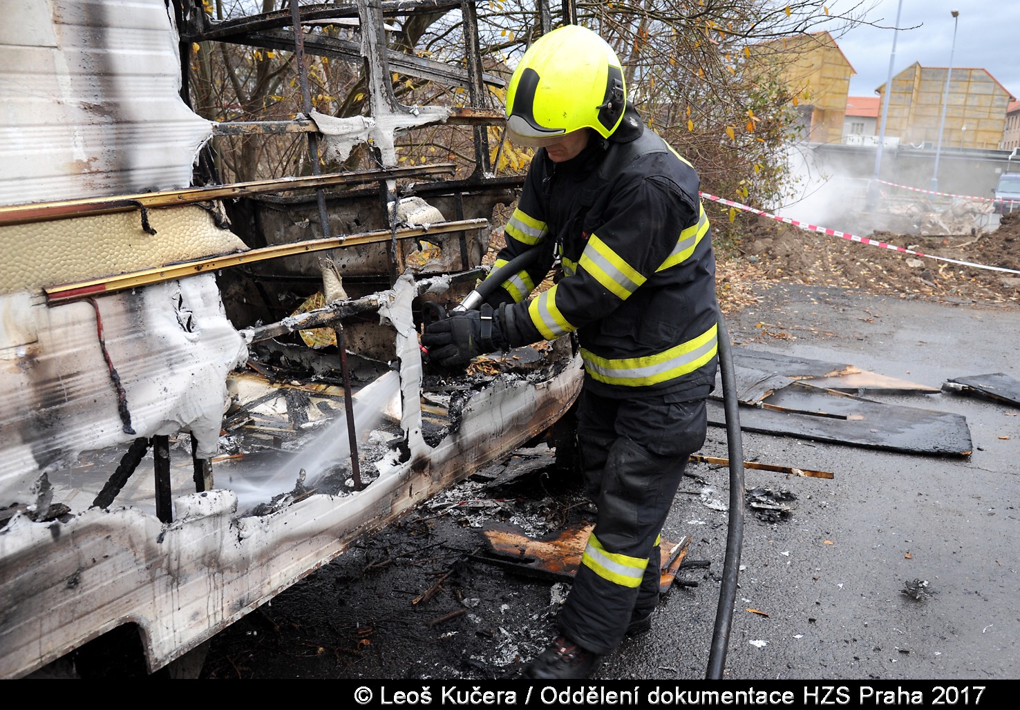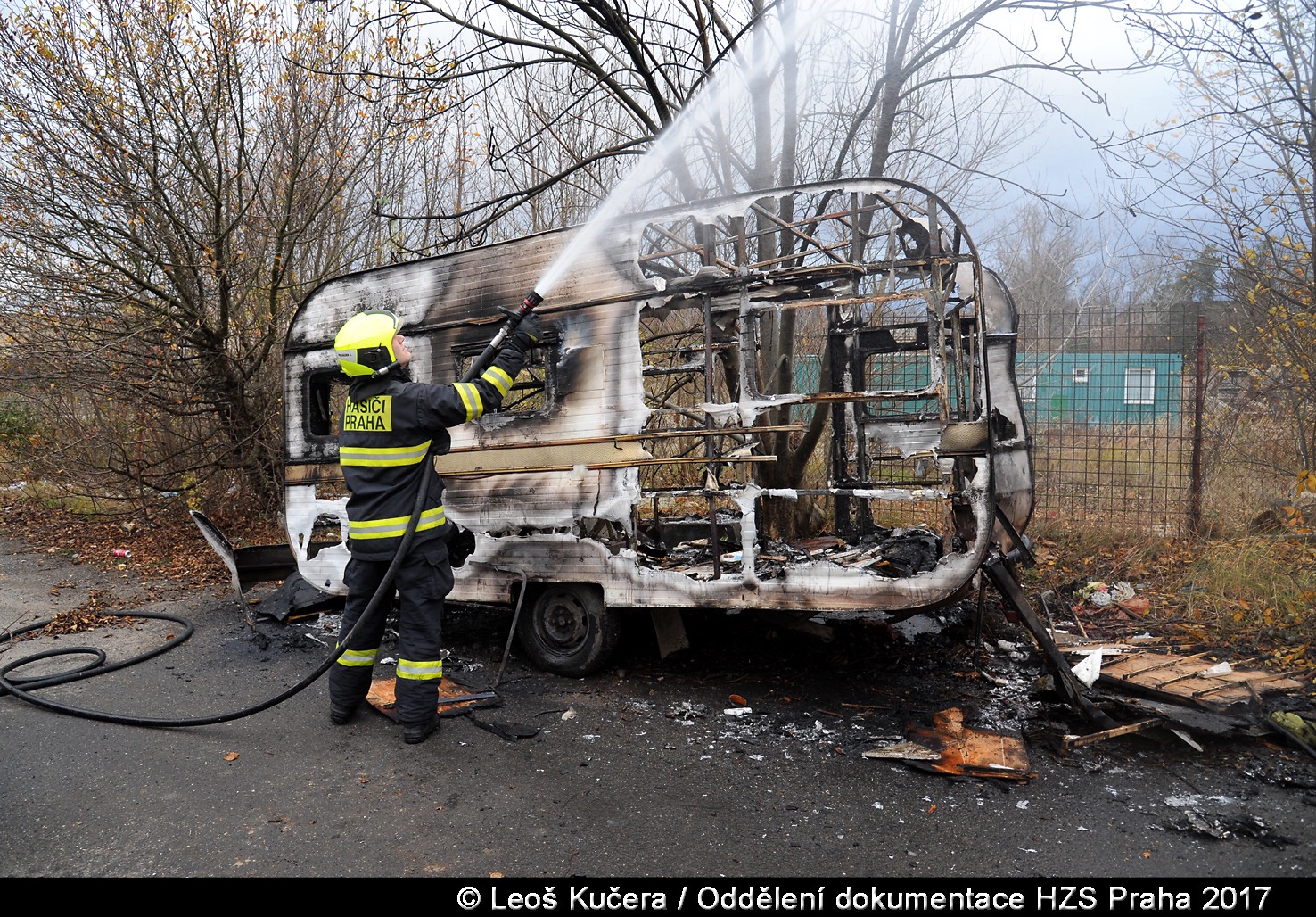 V ulici Dolnoměcholupská v Praze 10 zasahovala v neděli 19.11.2017 jednotka pražských hasičů ze Strašnic u požáru opuštěného karavanu. Plameny hasiči dostali rychle pod kontrolu pomocí vysokotlaké vody.