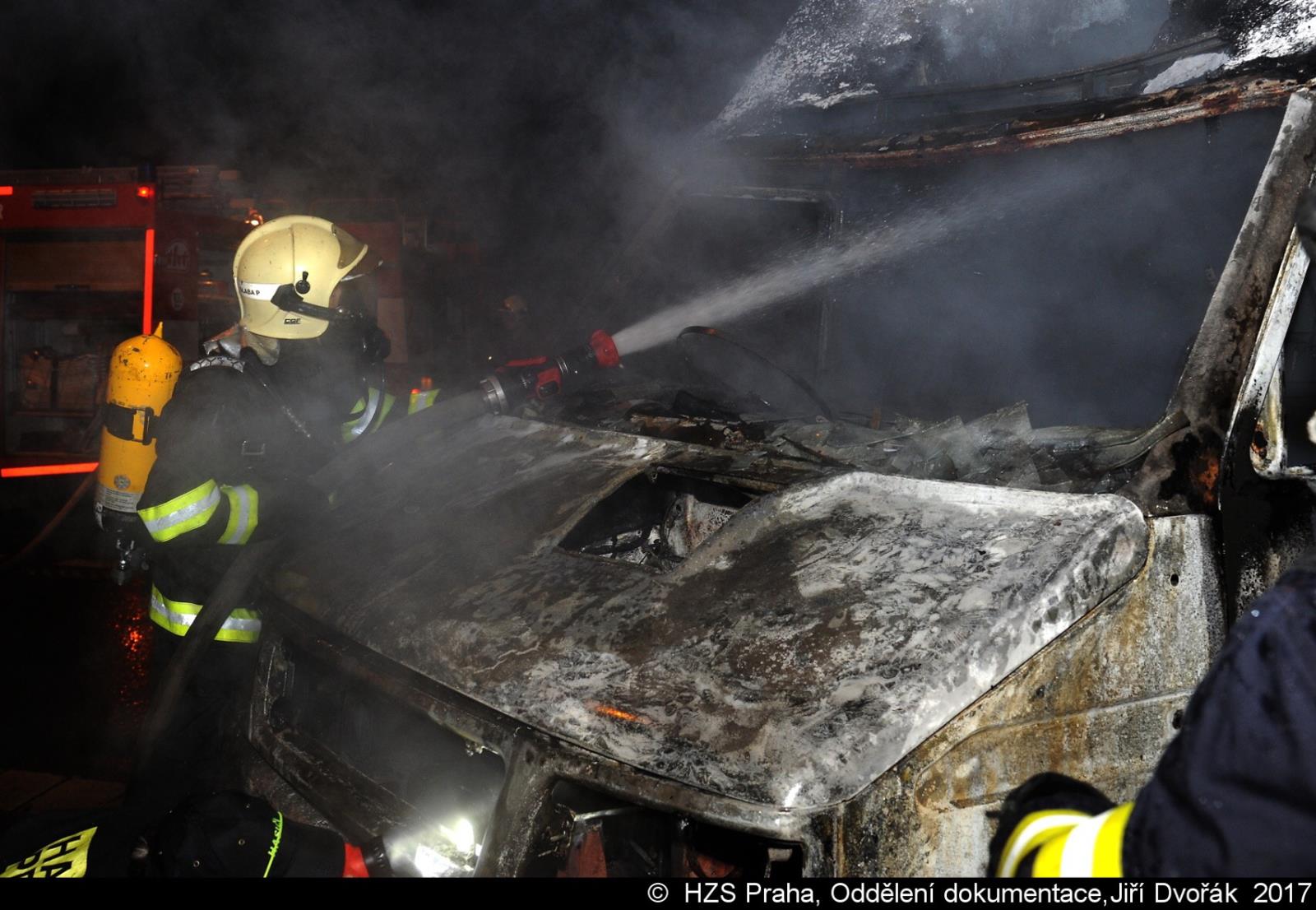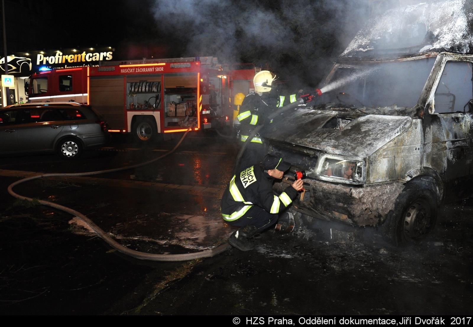 V neděli 12.11.2017 zasahovaly dvě jednotky pražských hasičů v 04:17 hodin u požáru dodávky v ulici Strakonická v Praze 5. Po příjezdu první jednotky bylo zřejmé, že automobil byl zcela zachvácen plamenným hořením.