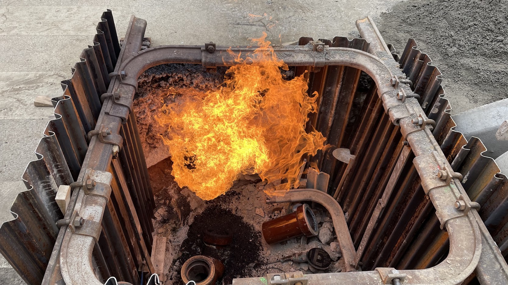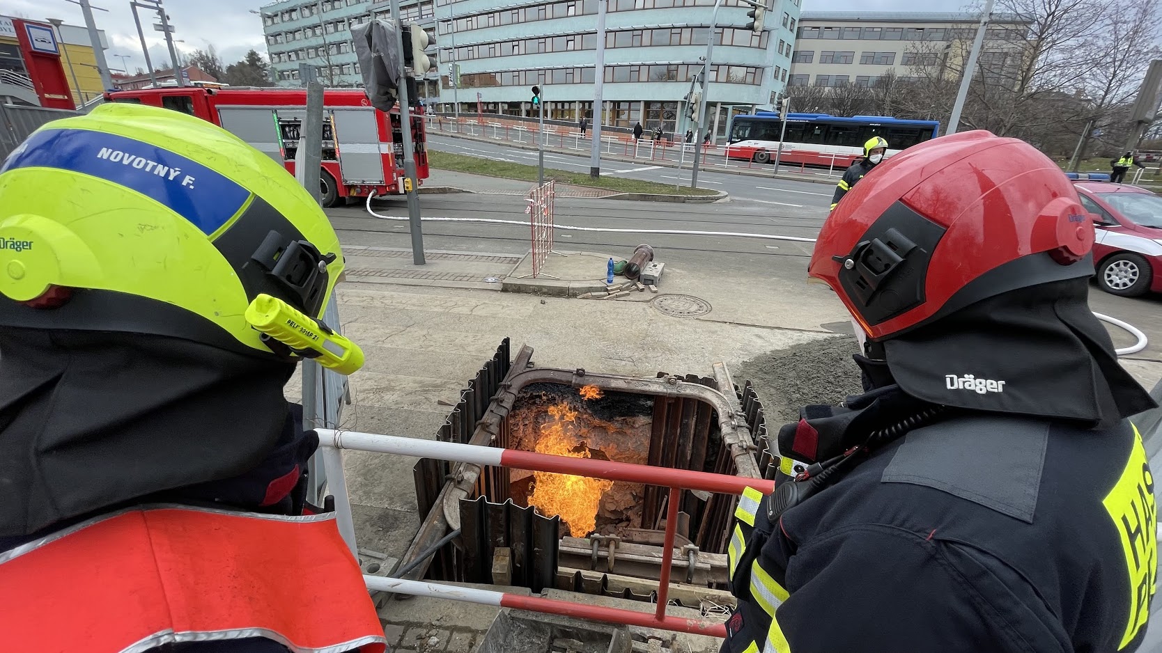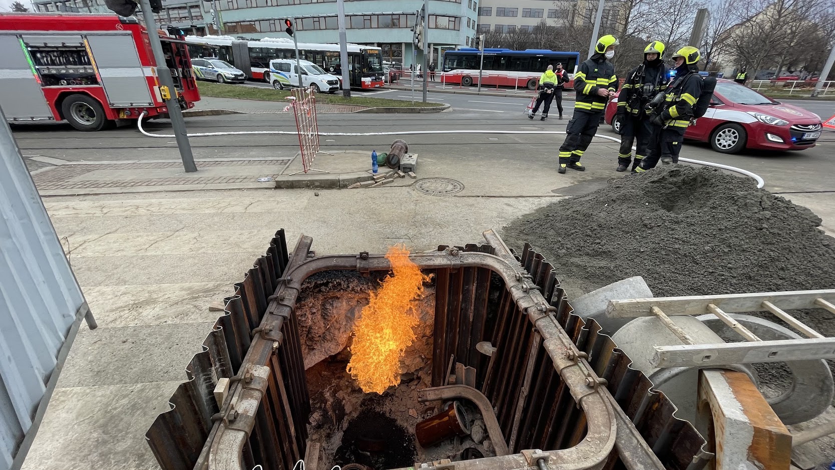Video zde: V Praze 8 unikal hořící plyn z potrubí ve výkopu