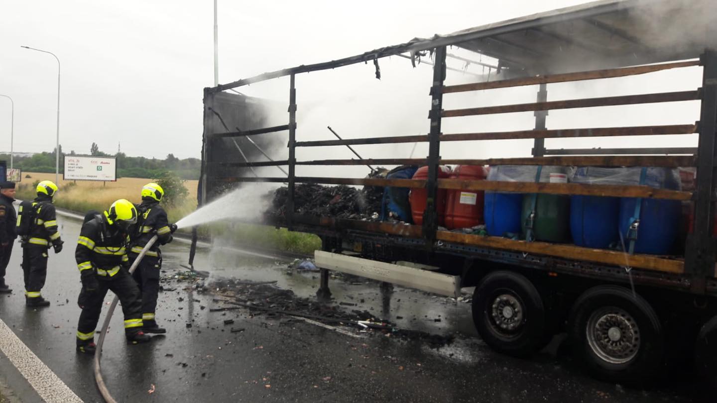 V Praze 9 hořel návěs s použitými bateriemi, na místě zasahovaly tři jednotky.