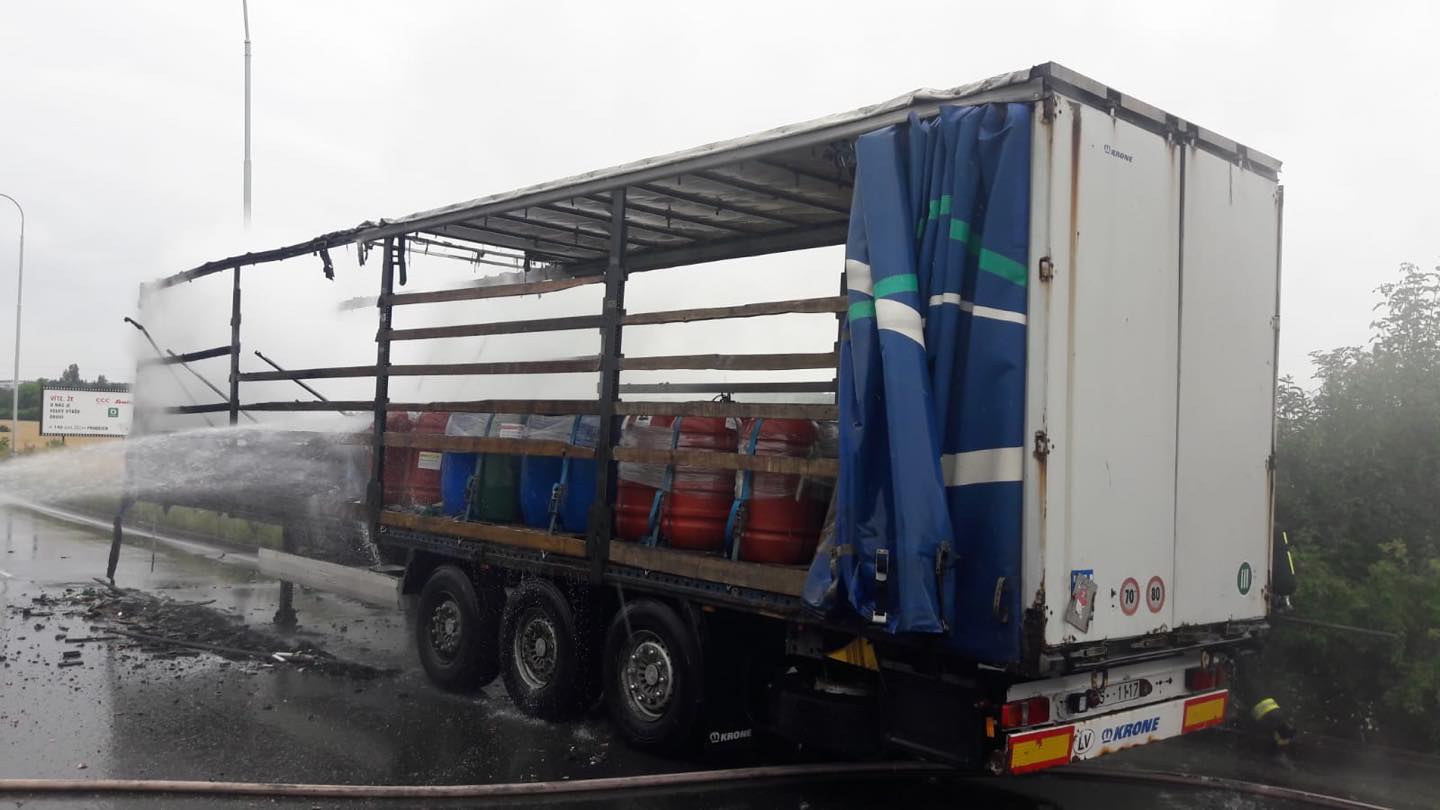 Dvě desítky hasičů zasahovaly ve středu 8. července 2020 od 14:17 hodin v ulici Cínovecká v Praze 9, kde hořel návěsu kamionu převážející baterie. Řidič stačil návěs odpojit od tahače ještě před příjezdem jednotky.