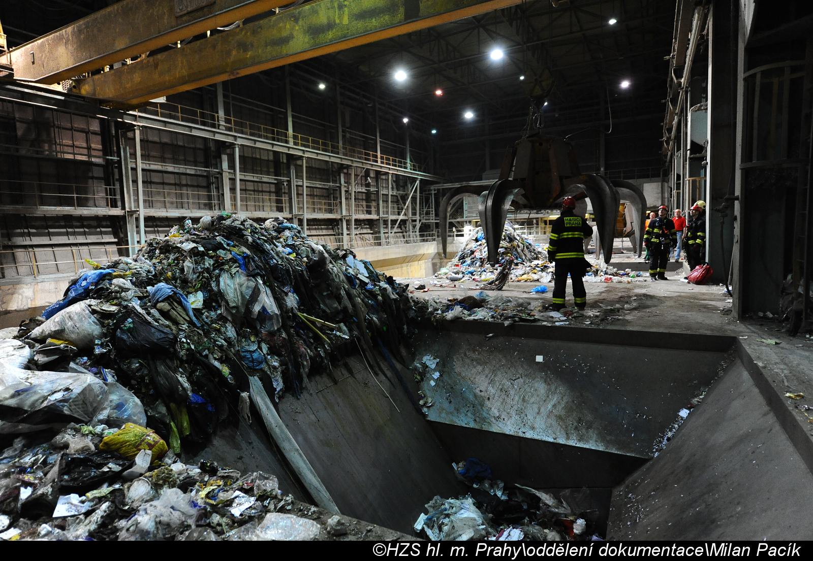 V Praze v noci do jímky odpadků ve spalovně spadl dělník, zachránili ho hasiči
