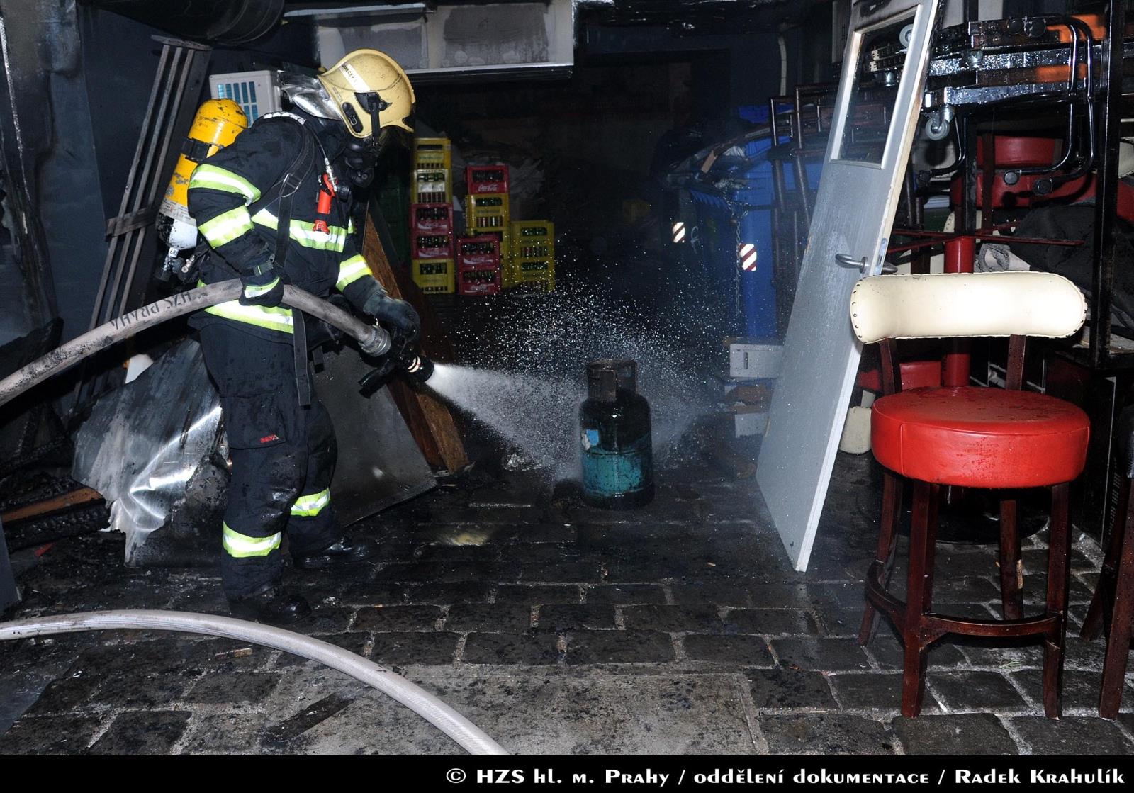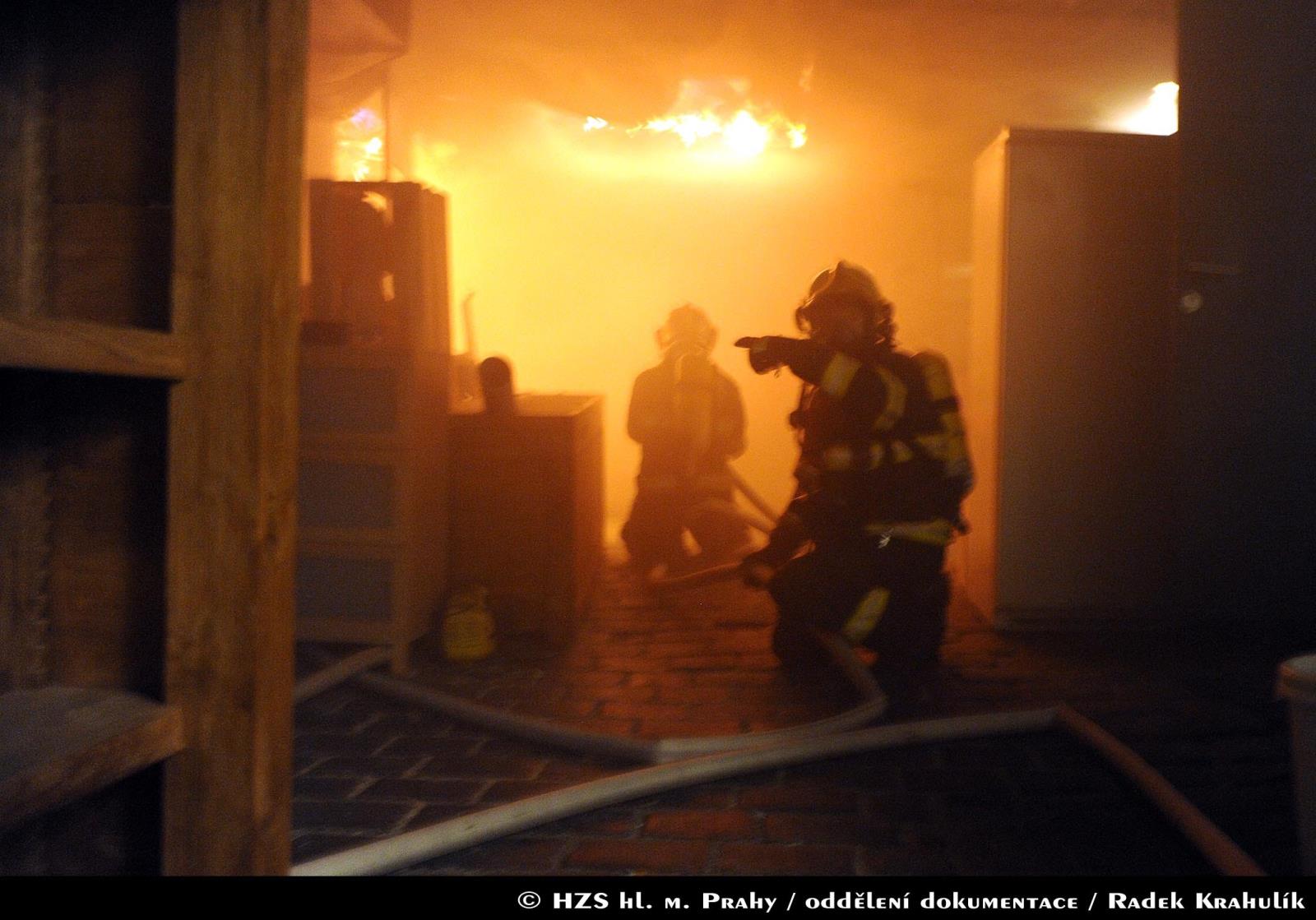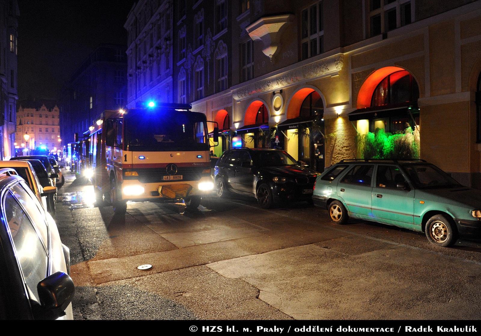 V centru Prahy před půlnocí hořelo v rekonstruované části restaurace, hasiči museli evakuovat 30 osob