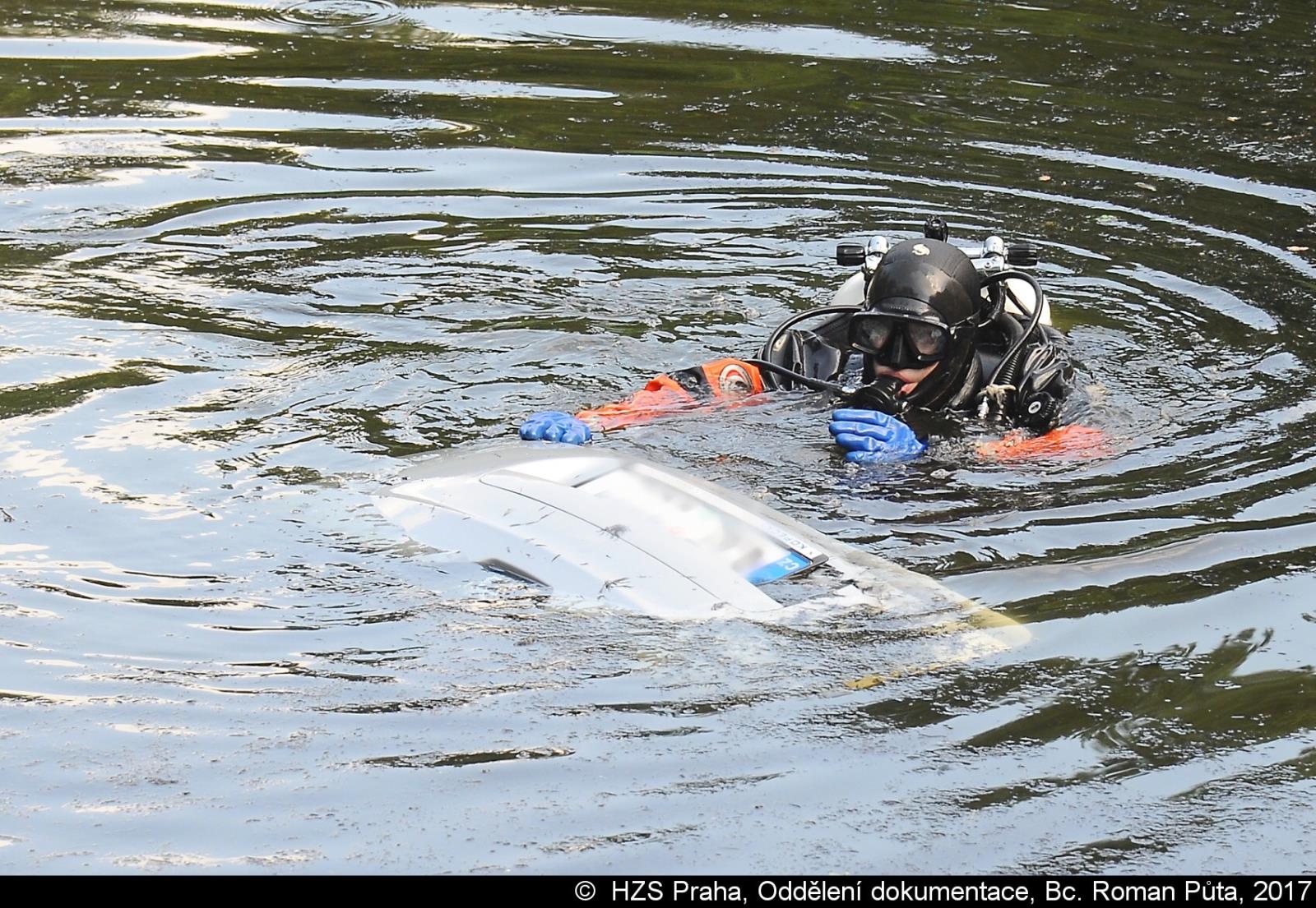 V pražském Brániku hasiči vytahovali potopené auto