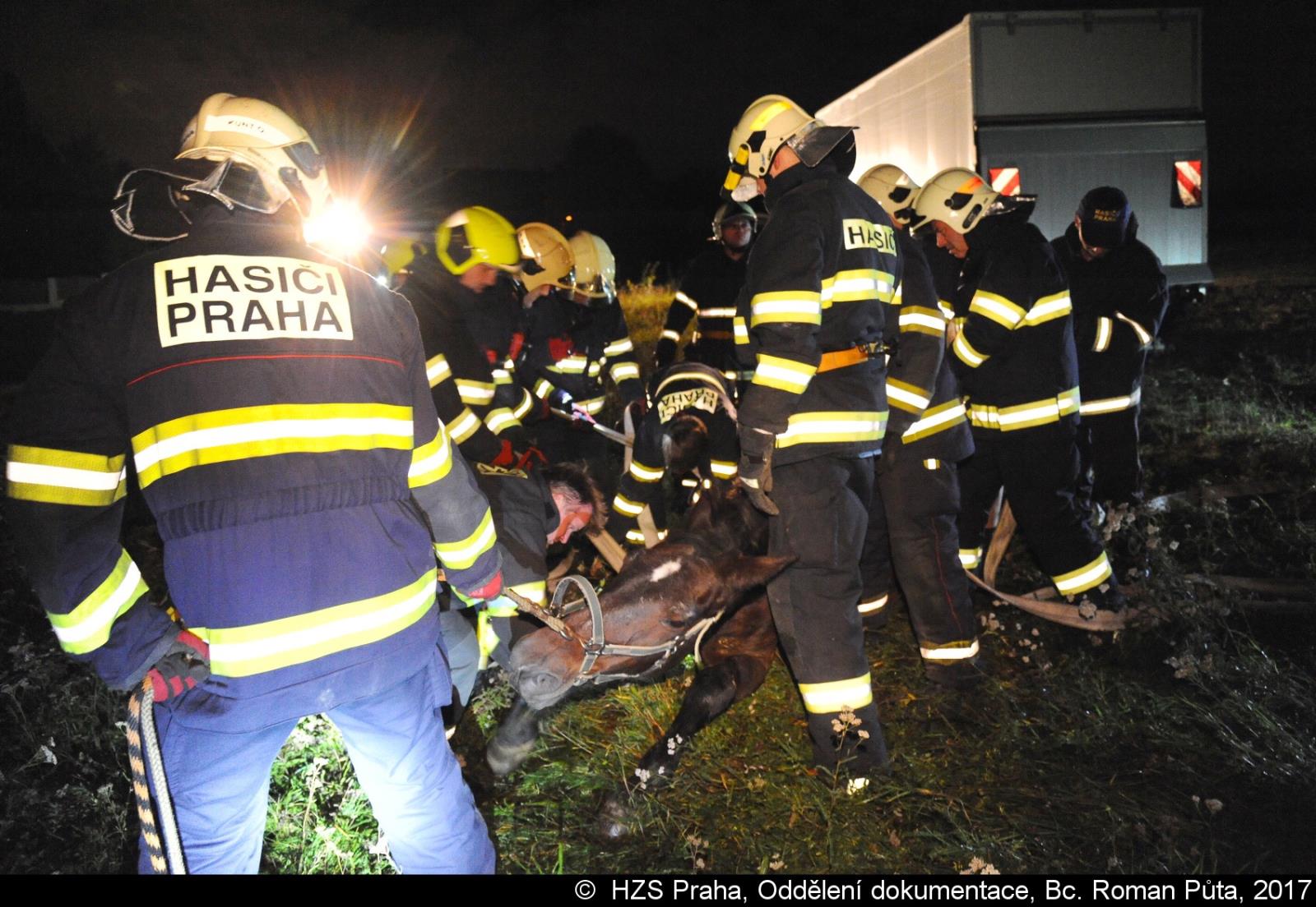 Dne 03.10.2017 v 20:10 hodin zasahovali profesionální hasiči z Radotína a Strašnic a dobrovolní hasiči z Lochkova v ulici Za ovčínem. Na místní louce lehla kobyla a nemohla vstát.