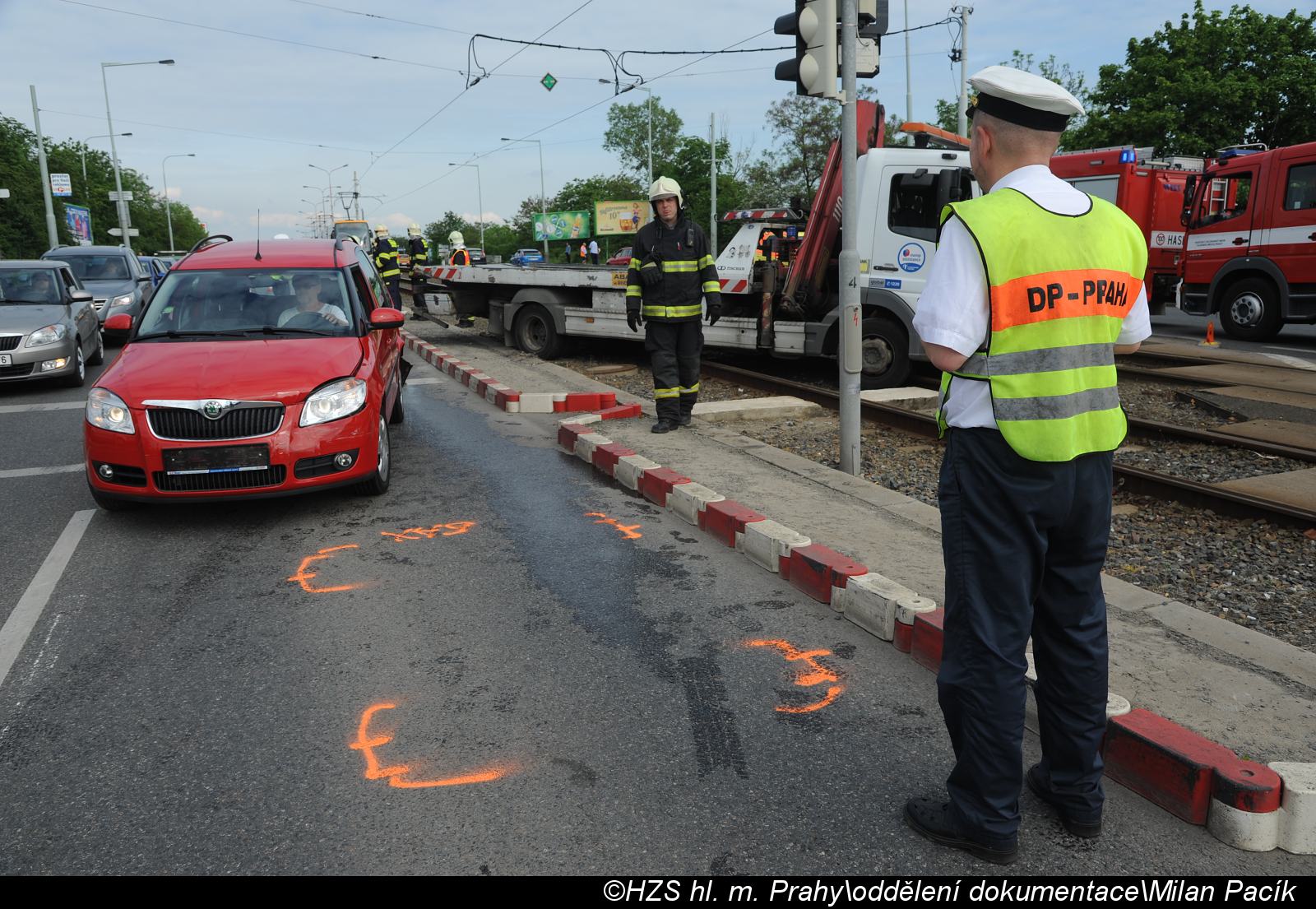Několik zraněných osob hasiči předali do péče ZZS. Jednu vážně zraněnou osobu pak pomohli transportovat do sanitního vozu. Následně hasiči sorbentem zasypali asi 100 metrů dlouhou olejovou skvrnu a společně s pracovníky DPP zprovoznili tramvajový pás. Po dobu zásahu byl provoz tramvají zcela uzavřen.