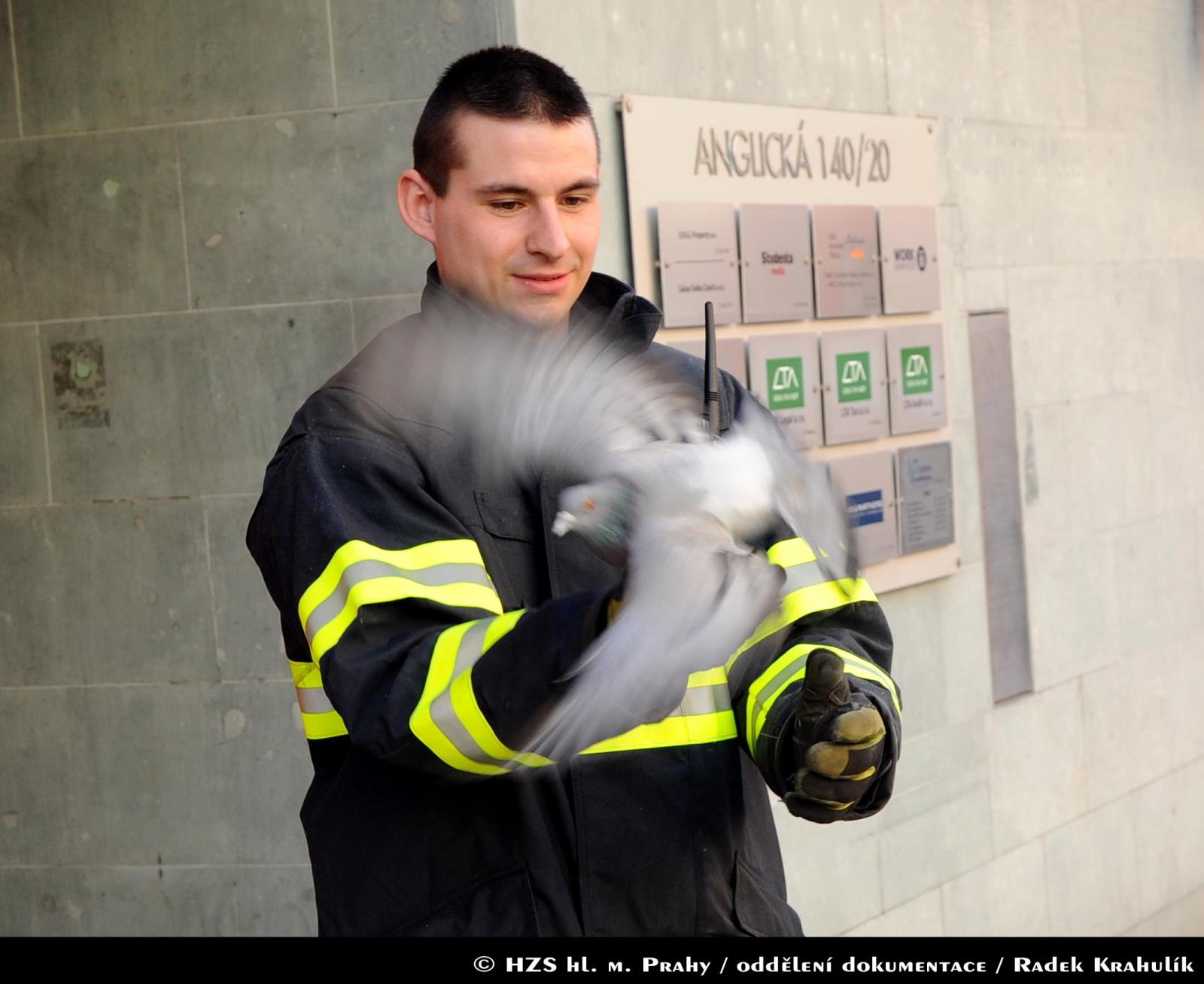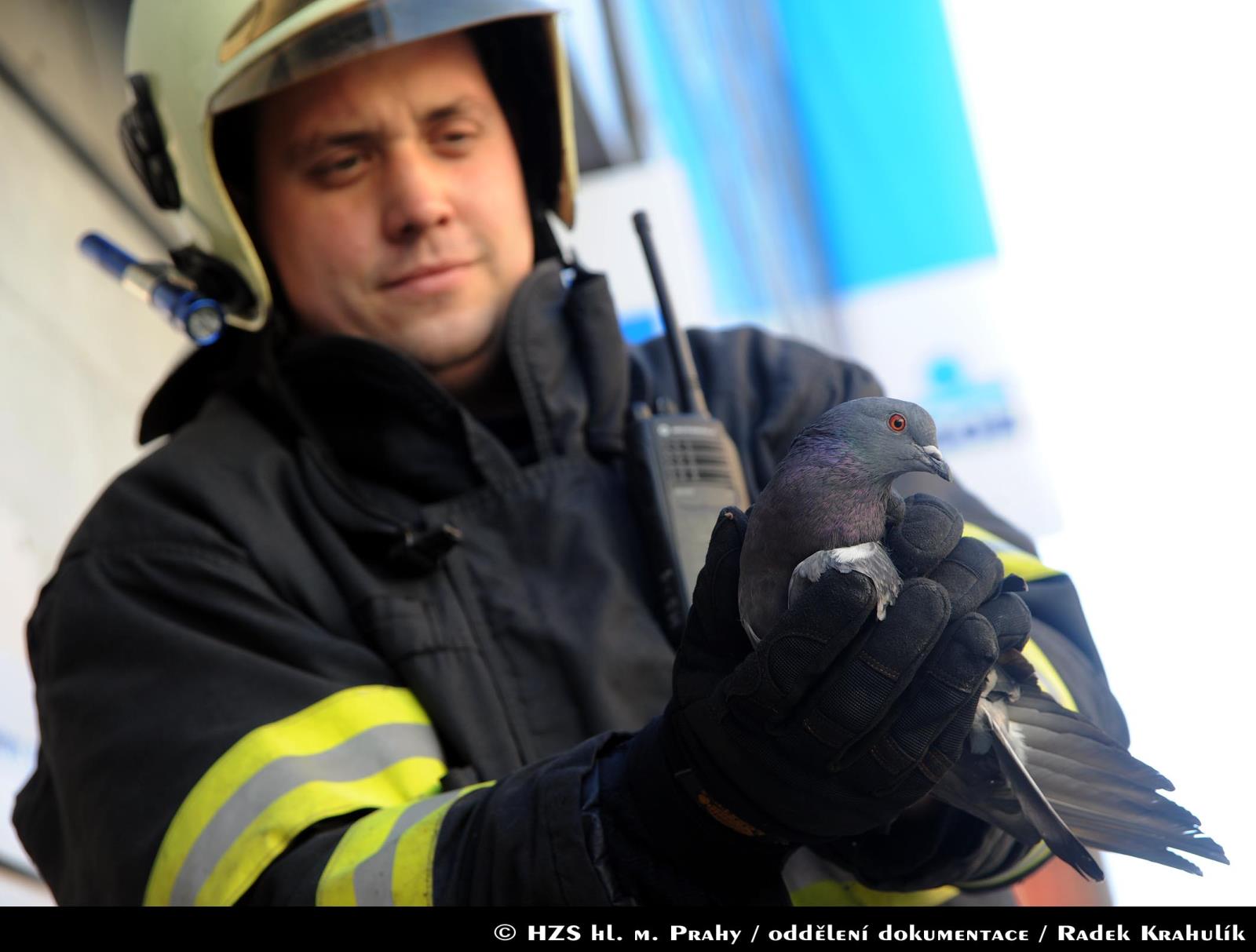 Na místě případu zasahovala jednotka z centrální stanice. Hasiči nakonec museli do sádrokartonového podhledu udělat otvor, aby holuby dostali ze zajetí.