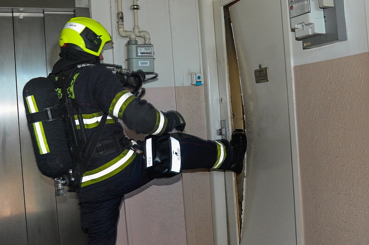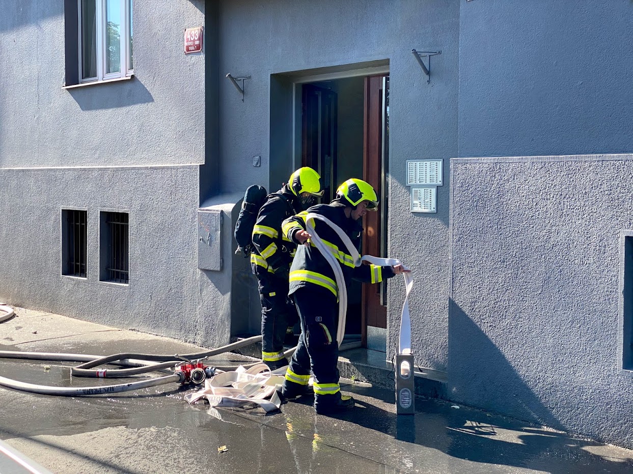 První jednotka byla na místě během 2 minut a velitel zásahu si na místo povolal další posilové jednotky. Požárem byly zasaženy 2 byty ve 2 vchodech. To bylo způsobeno propadem příčky a rozšířením do další bytové jednotky. Z toho důvodu začala evakuace a záchrana osob z obou vchodů pomocí vyváděcích masek a výškové techniky.