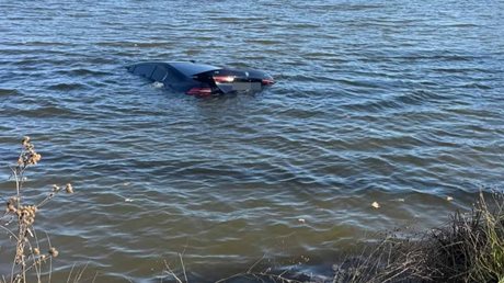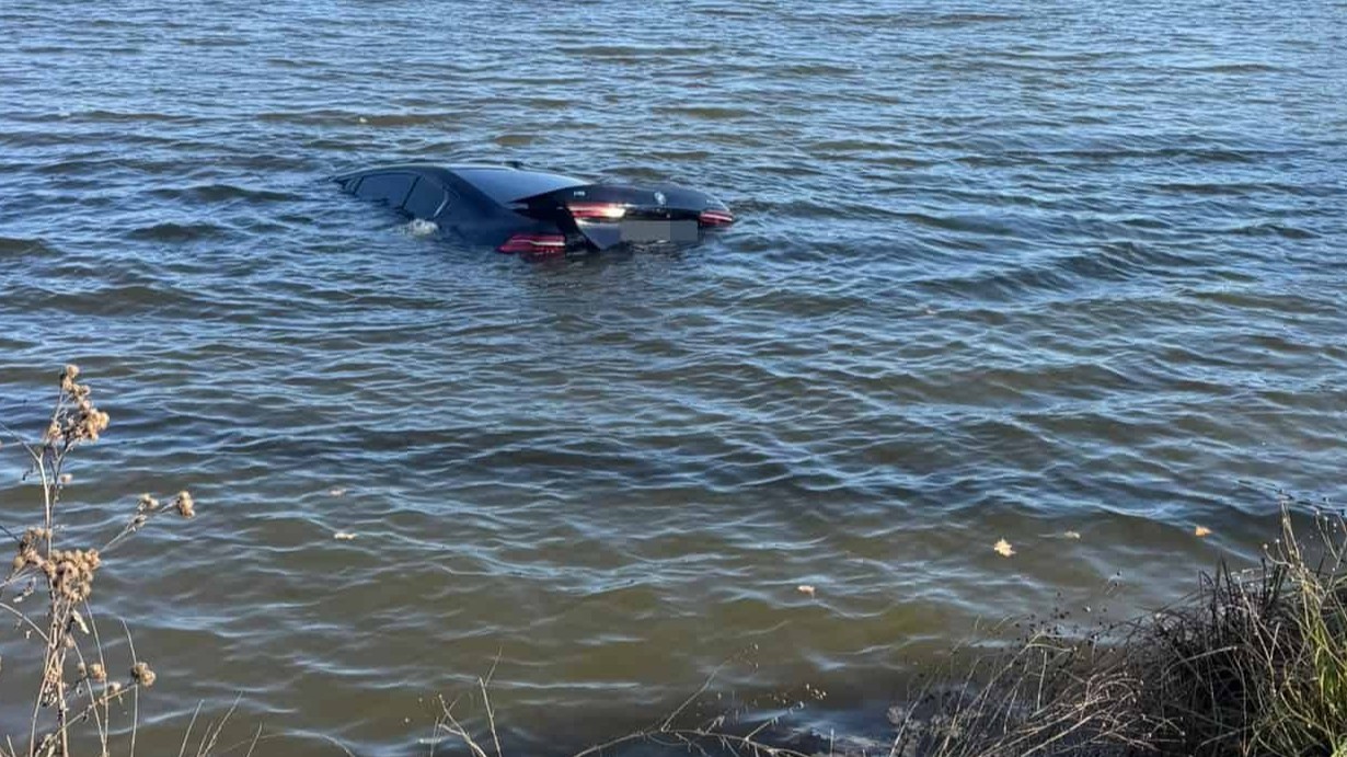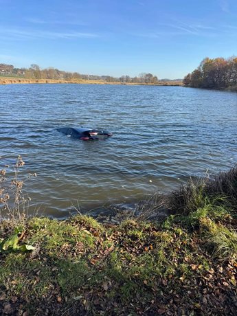 Auto sjelo do rybníka. Vůz byl téměř celý pod vodou, řidič stihl uniknout