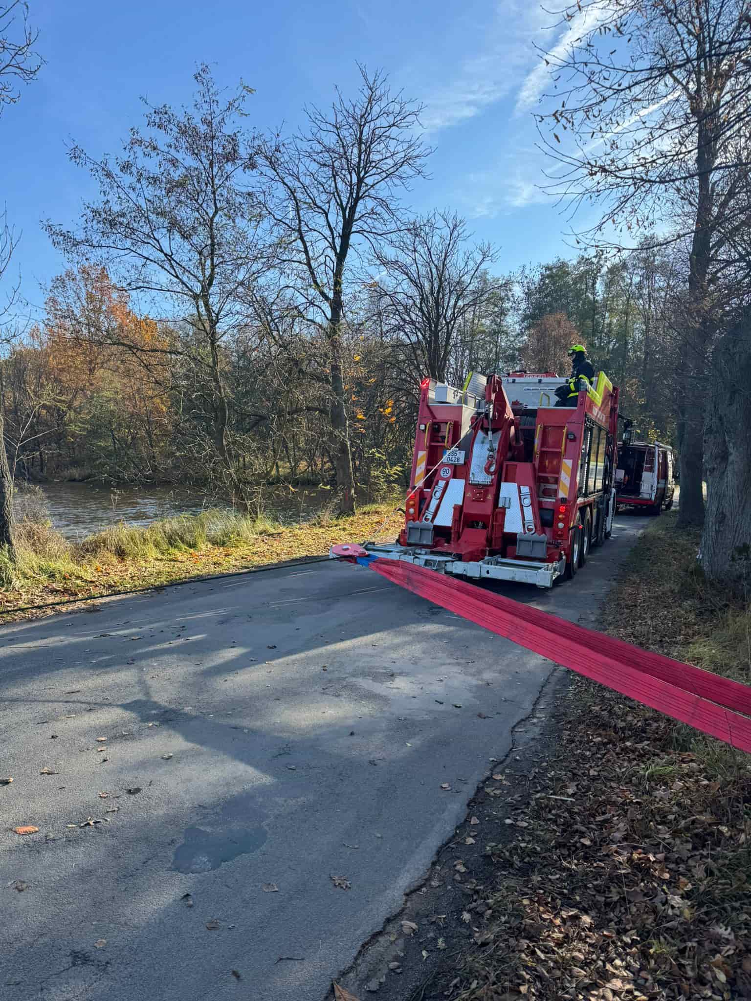 Jakmile bylo vozidlo vytaženo, hasiči provedli protipožární opatření. To je běžný postup u vozidel, která jsou několik minut pod vodou – při manipulaci se může uvolnit elektroinstalace nebo technické kapaliny.