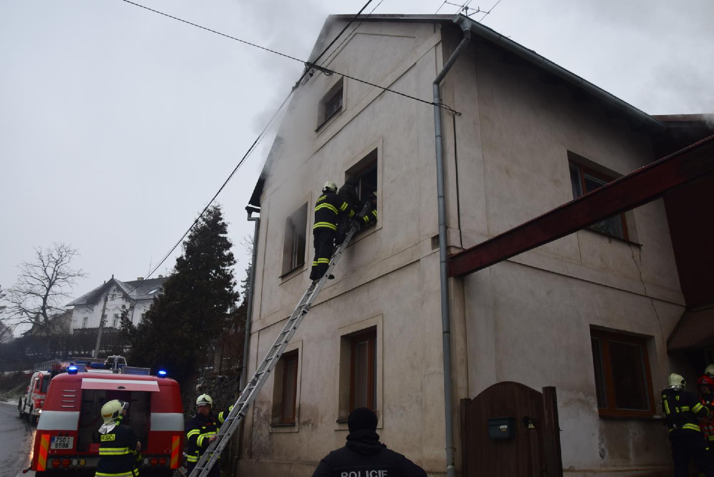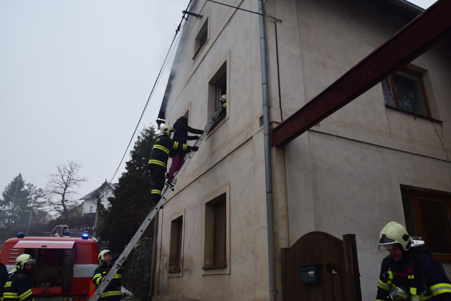 Hasiči pak všechny 4 osoby zachránili pomocí nastavovacích žebříků a poskytli první pomoc v podobě kyslíkové terapie. Záchranná služba je ošetřila na místě bez nutnosti transportu do nemocnice. Uvnitř zakouřeného domu současně probíhaly hasební práce v dýchací technice. Za 45 minut byl požár pod kontrolou a přibližně stejný čas potom probíhalo dohašování a ventilace objektu.