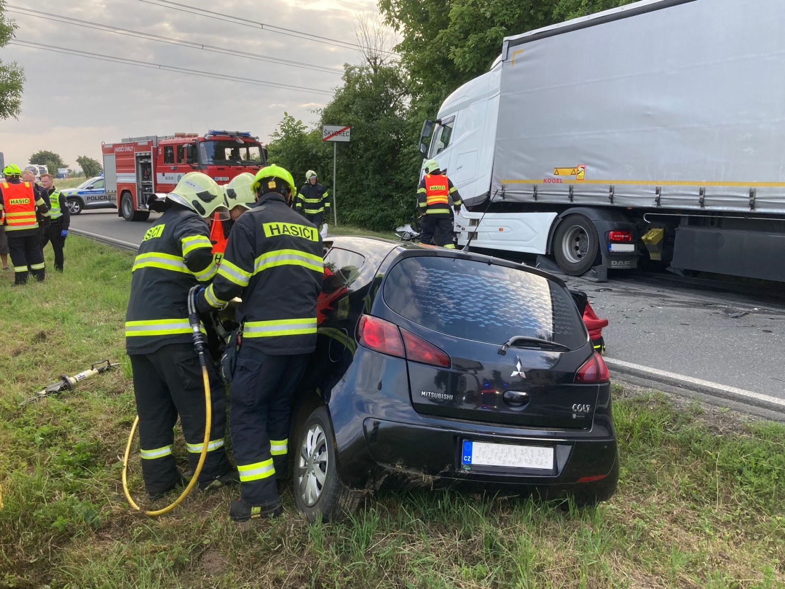 DN kamionu a osobního auta Škvorec