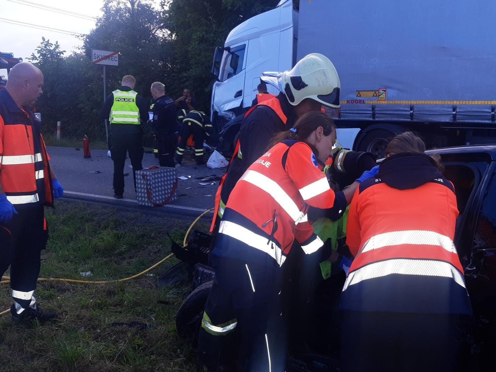 Dopravní nehoda kamionu a osobního vozidla zastavila provoz na vjezdu do obce Škvorec po silnici č. 101 ve směru od Úval. Profesionální hasiči z Říčan spolu s jednotkou SDH obce Úvaly, která je předurčena na zásahy u dopravních nehod, zachránili zaklíněného řidiče osobního automobilu pomocí hydraulického vyprošťovacího zařízení.