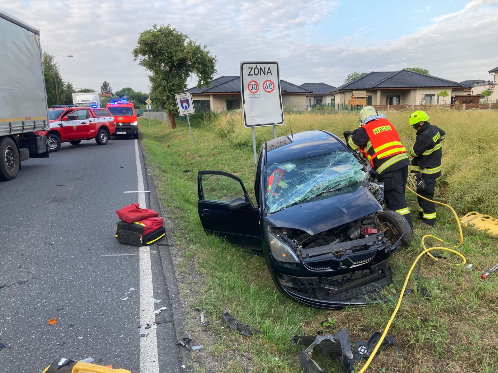 3. července, 6.18 hodin, Škvorec (Praha-východ) Dopravní nehoda kamionu a osobního vozidla zastavila provoz na vjezdu do obce...