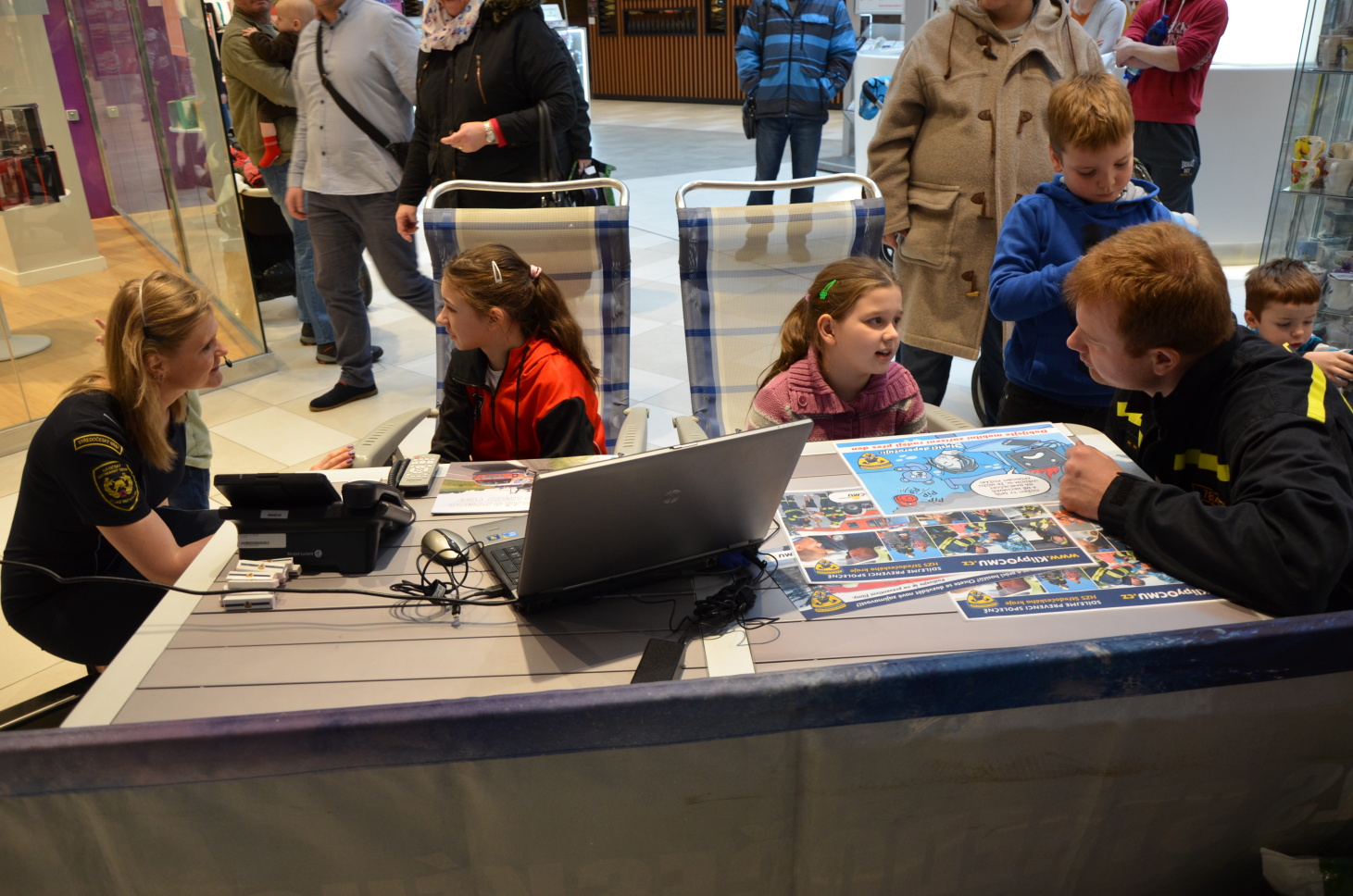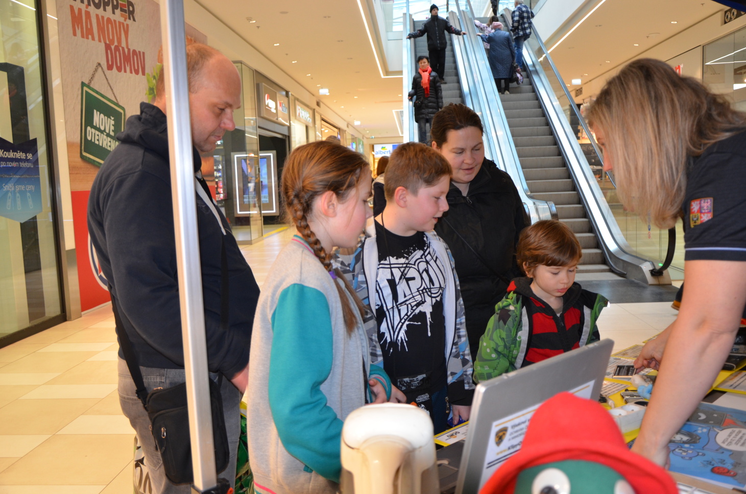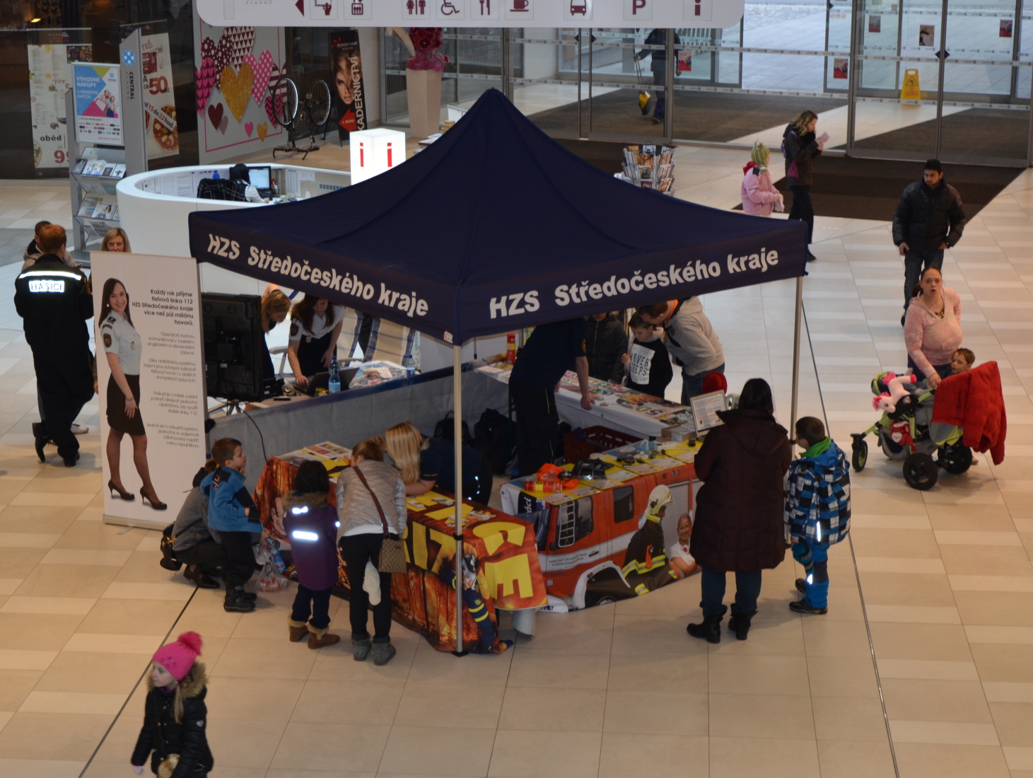 obchodního centra zastavit u stánku HZS Středočeského kraje a vyzkoušet si své znalosti v testech a kvízech, které pro prakticky všechny věkové kategorie připravili příslušníci z úseku prevence. Ti si na pomoc přizvali i kolegy z dobrovolných sborů, se kterými pravidelně spolupracují na různých akcích. A rozhodně tato pomoc byla potřebná, protože po celých pět hodin se u hasičského stanoviště střídaly davy zájemců. Nejvíce zvědavců bylo tradičně z řad těch nejmenších, kteří si chtěli za své vědomosti odnést nějakou drobnost na památku nebo aspoň ochutnat pravé hasičské bonbony.