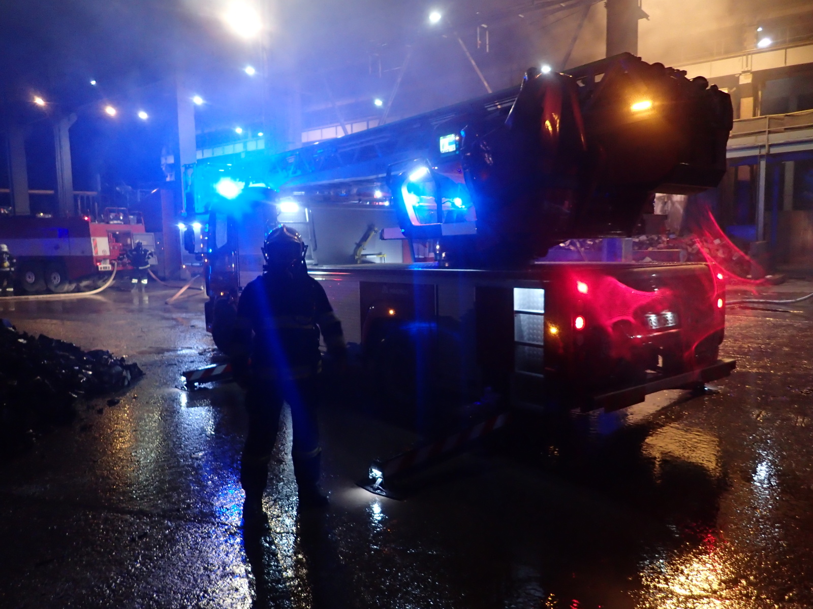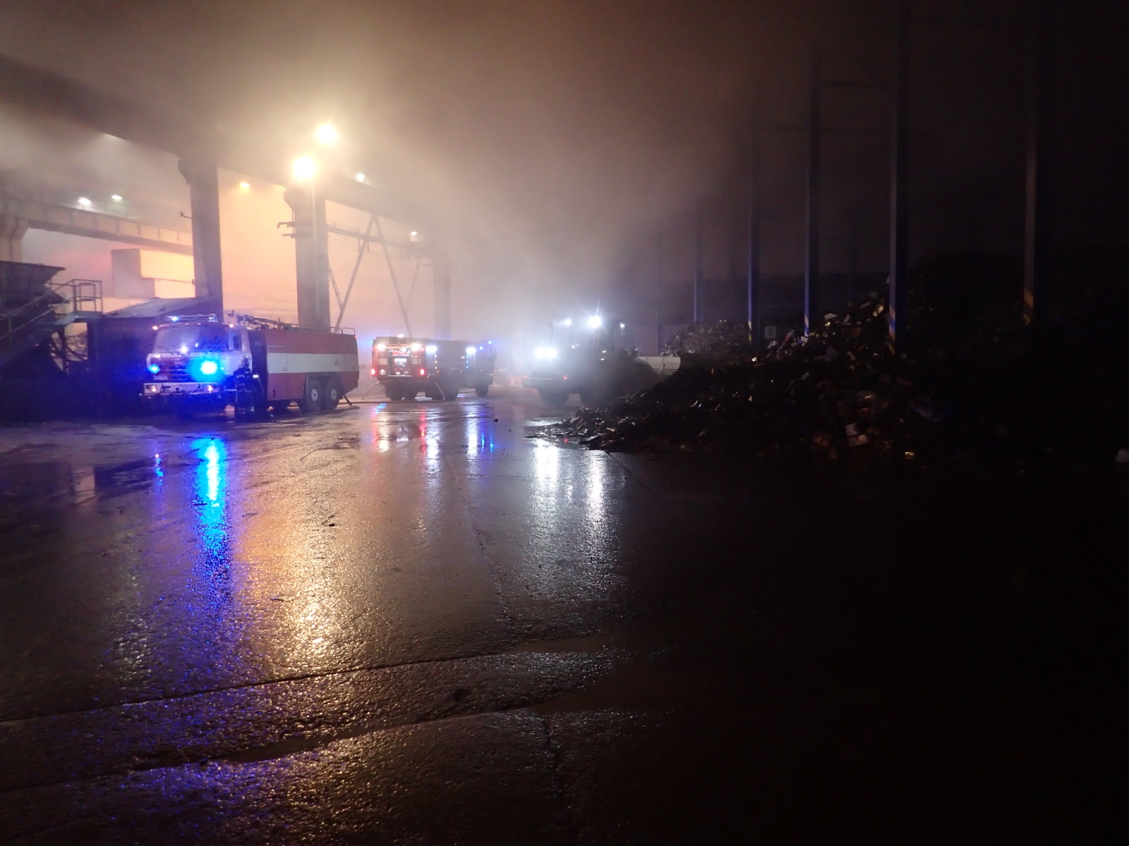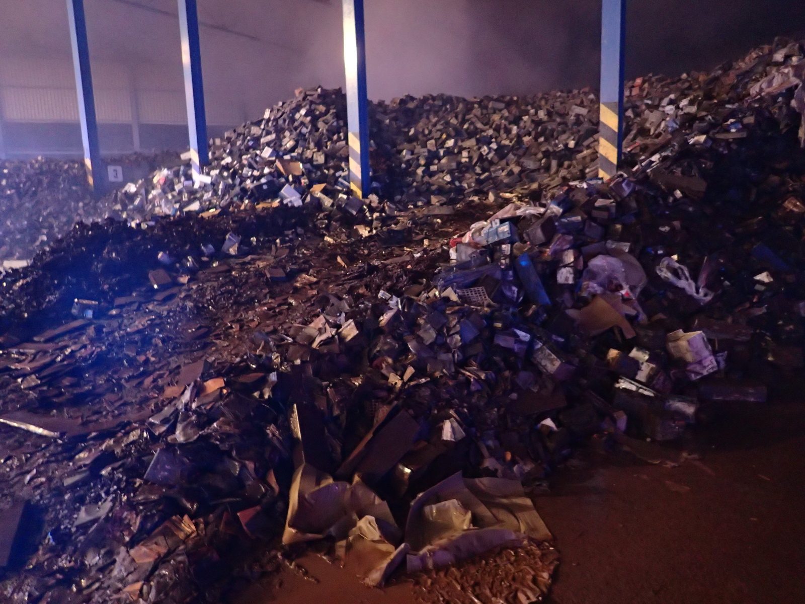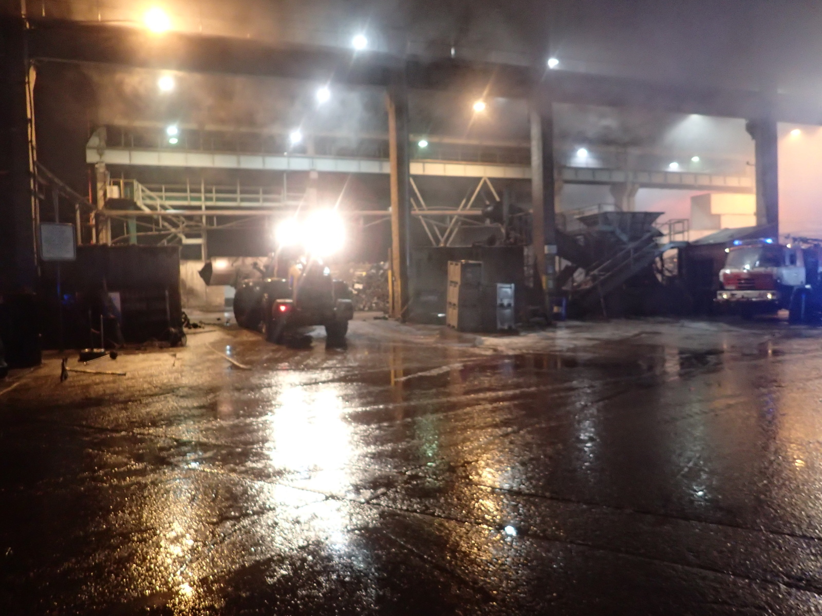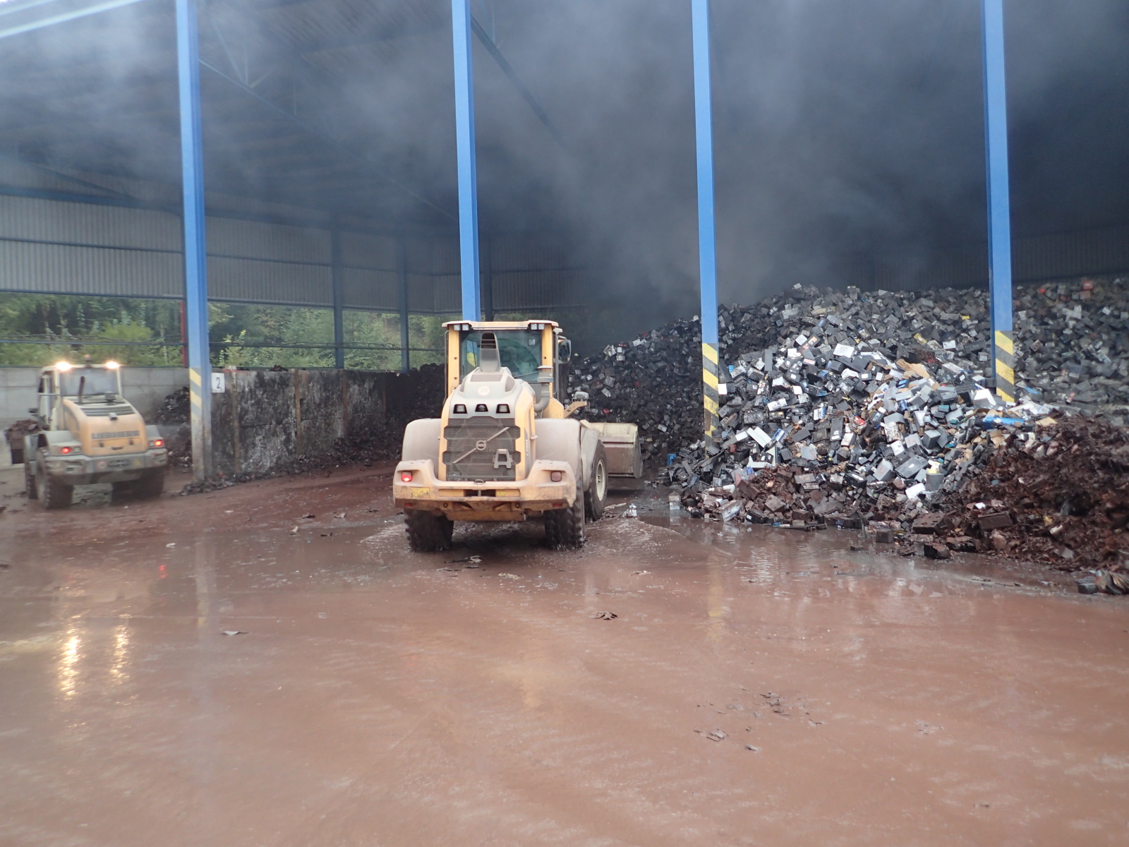 poplachu. Hasiči na místě zřídili čerpací stanoviště a zahájili hasební práce. Protože šlo o obrovskou hromadu, bylo zapotřebí začít s jejím postupným rozebíráním pomocí těžké techniky, vyvážením zasaženého materiálu a jeho dohašováním. Velitel zásahu tak požádal o vyslání speciálního nakladače JCB ze ZÚ HZS ČR ve Zbirohu, který už za hodinu dorazil na místo a ihned se plně zapojil do likvidačních prací.