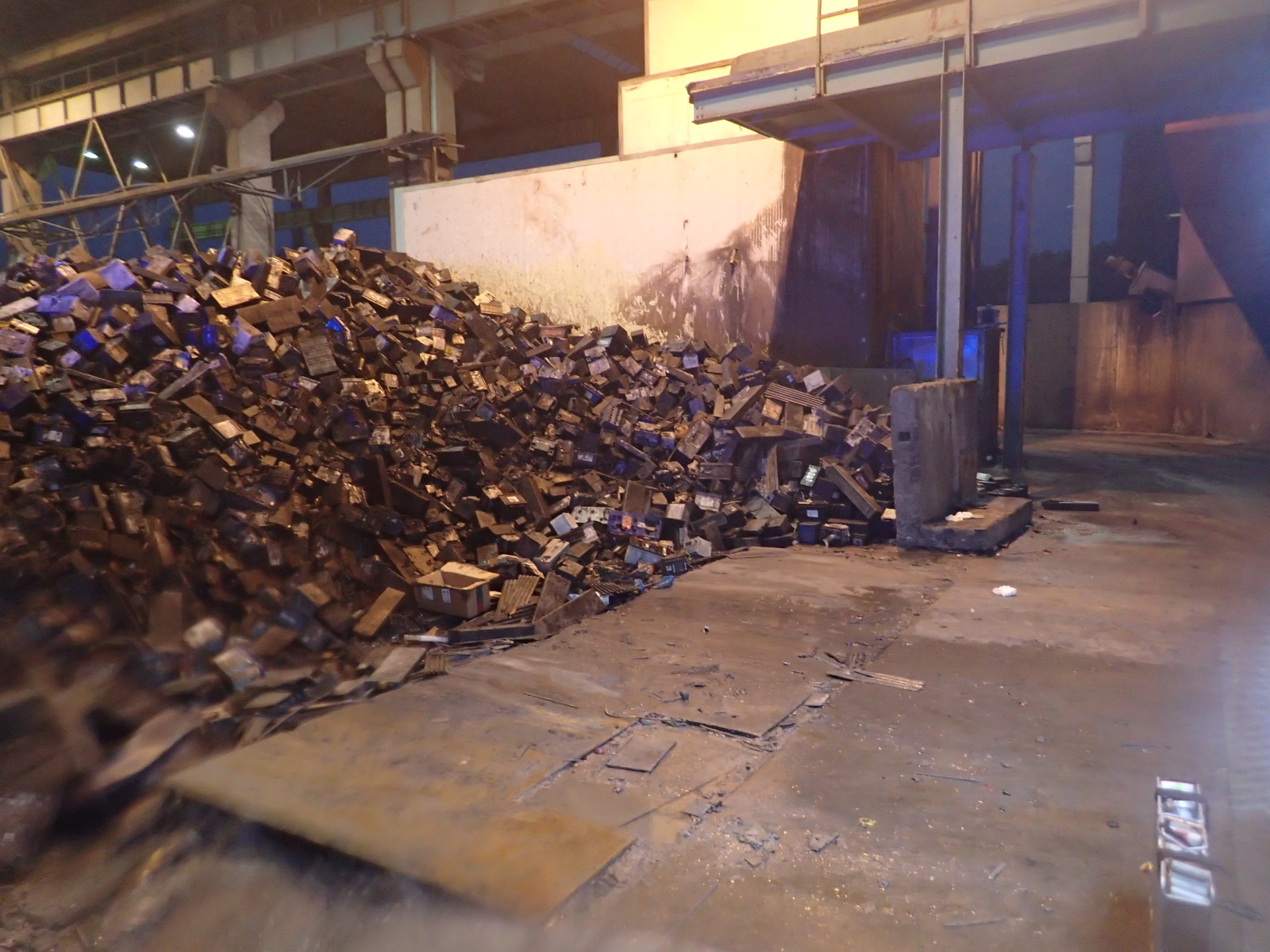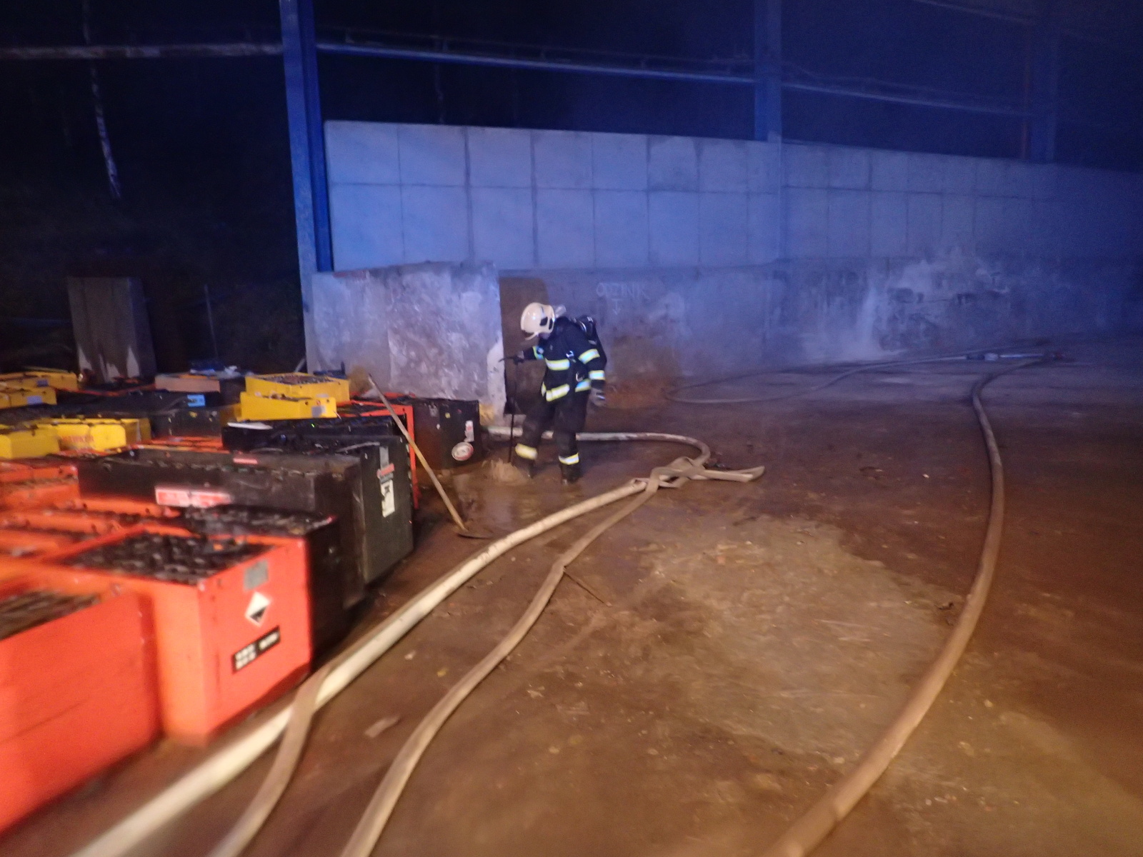 Operační důstojník k události vyslal všechny jednotky z prvního stupně. Po příjezdu první jednotky na místo bylo zjištěno, že požár zasáhl hromadu cca 200 tun vyřazených autobaterií, které jsou určeny k likvidaci. Velitel zásahu si na místo vyžádal ihned další posilové jednotky, hlavně velkoobjemové cisterny z důvodu nedostatku hasební vody.