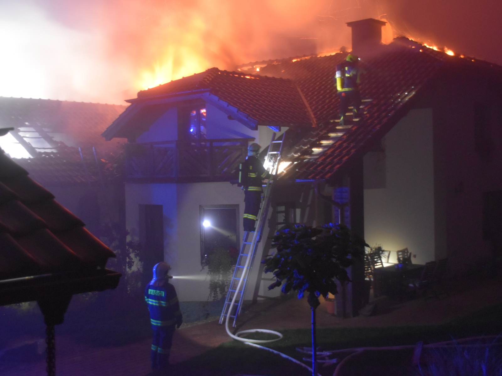 Vzhledem k tomu, že po příjezdu prvních jednotek bylo potvrzeno, že oheň už zasáhl střechu domu, byl zvýšen poplachový stupeň na druhý. K události byli povoláni další hasiči, konkrétně profesionální jednotka ze stanice Dobříš a dobrovolné jednotky obcí Březnice, Milín, Obecnice, Rožmitál pod Třemšínem a Trhové Dušníky. Zároveň byla místní dobrovolná jednotka Podlesí vyzvána, aby na nádrži v obci zřídila čerpací stanoviště, odkud se bude dovážet hasební voda ke zdolání požáru.