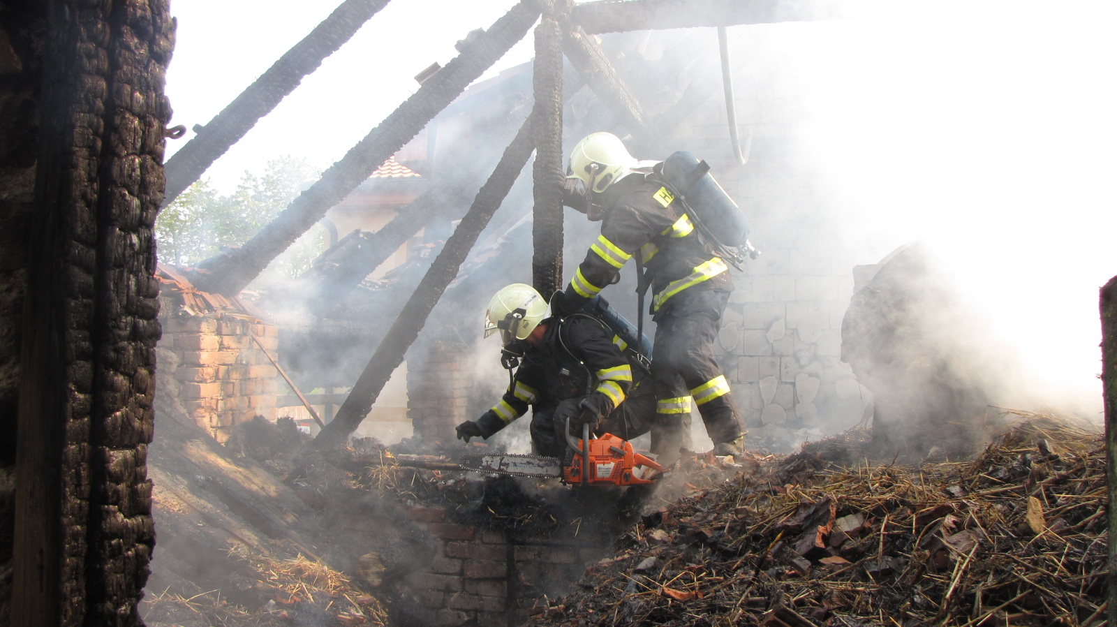 Požárem byla zachvácena stodola o půdorysu čtverce 8 x 8 metrů s uskladněným senem, která bezprostředně navazovala z jedné strany na rodinný dům a z druhé na přístavek s větším množstvím palivového dřeva. Hasičům se podařilo plameny "odříznout" třemi vodními proudy těsně před rozšířením ohně na střešní konstrukci a první patro rodinného domu.