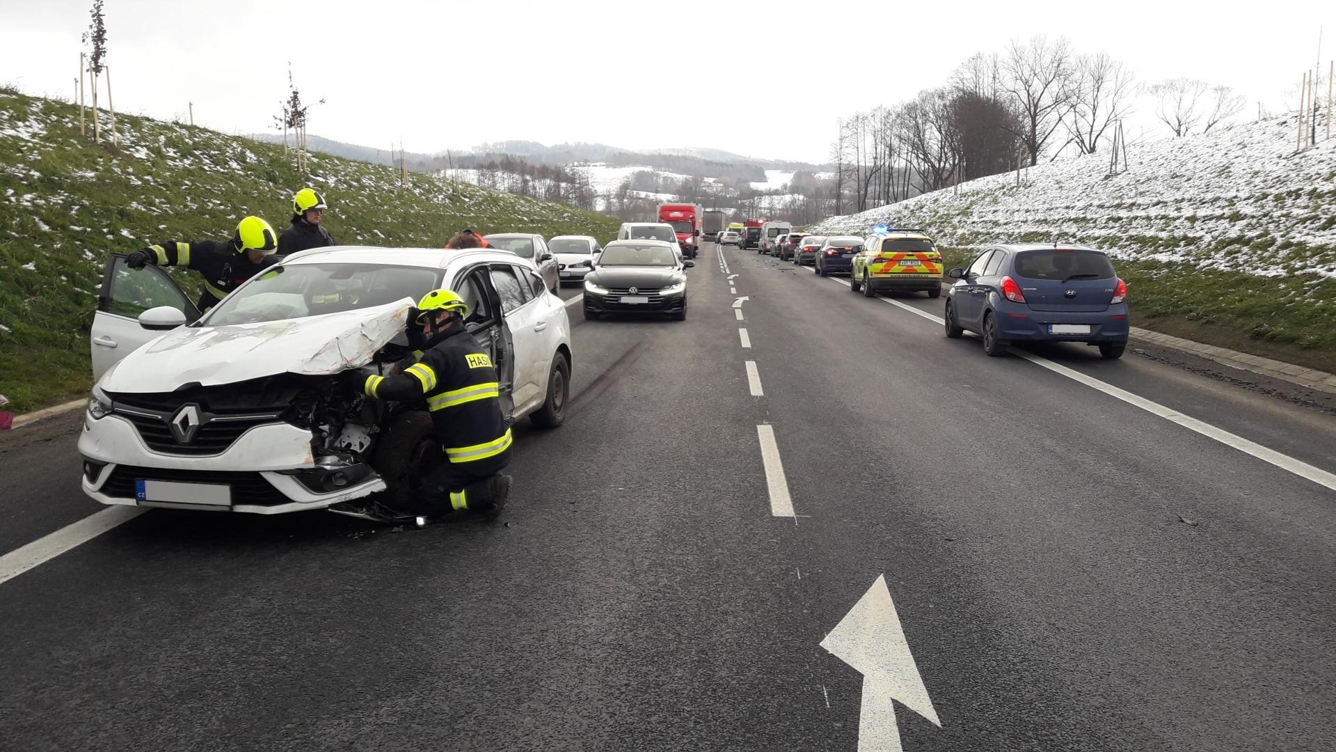 06.02.2026 Nehoda tří vozidel zablokovala silnici a vyžádala zásah hasičů Na silnici II/318 došlo ke střetu osobního, nákladního vozidla a dodávky. Hasiči vyprošťovali zaklíněného řidiče a dvě zraněné osoby převezla ZZS. Zobrazit článek