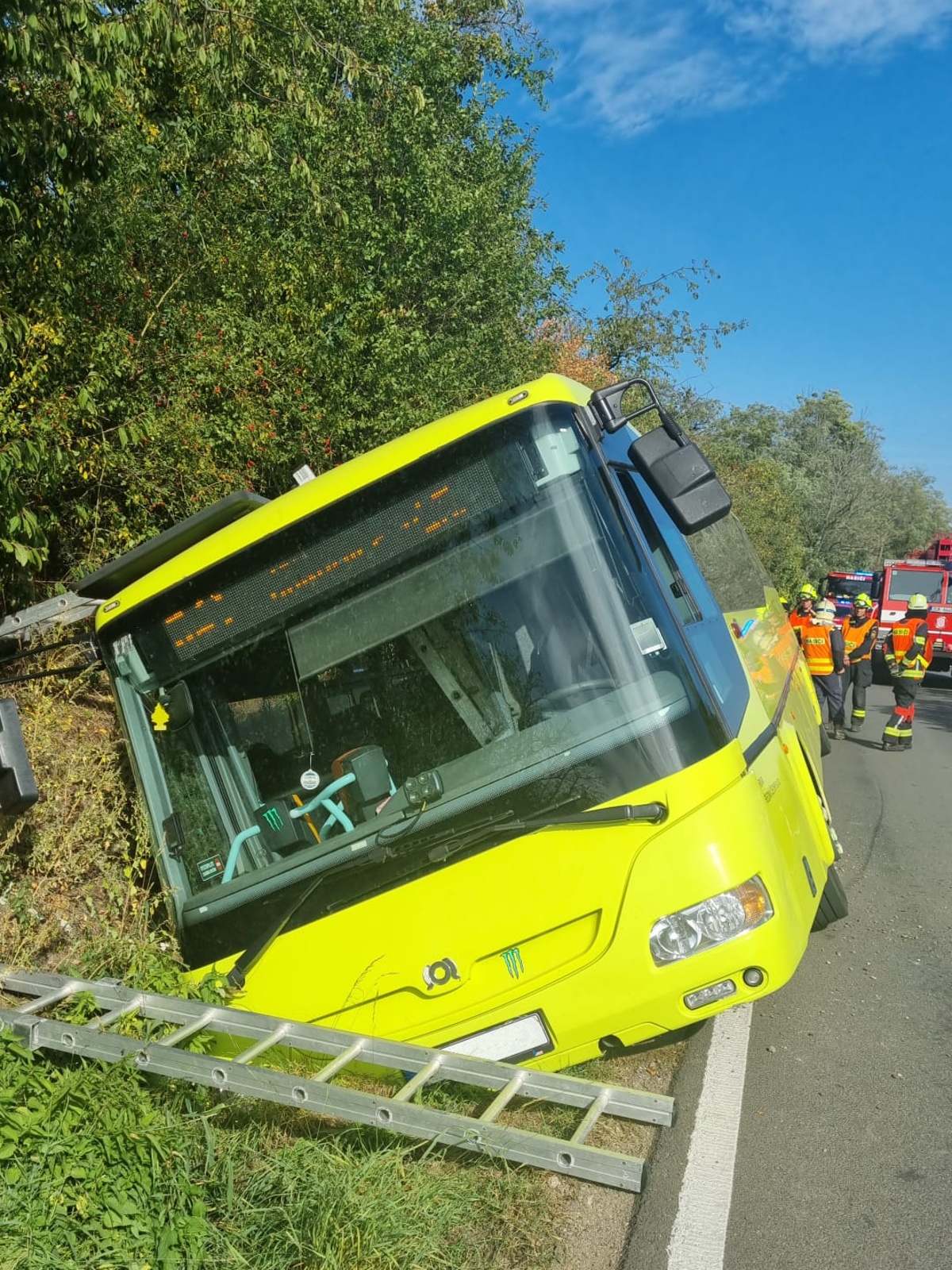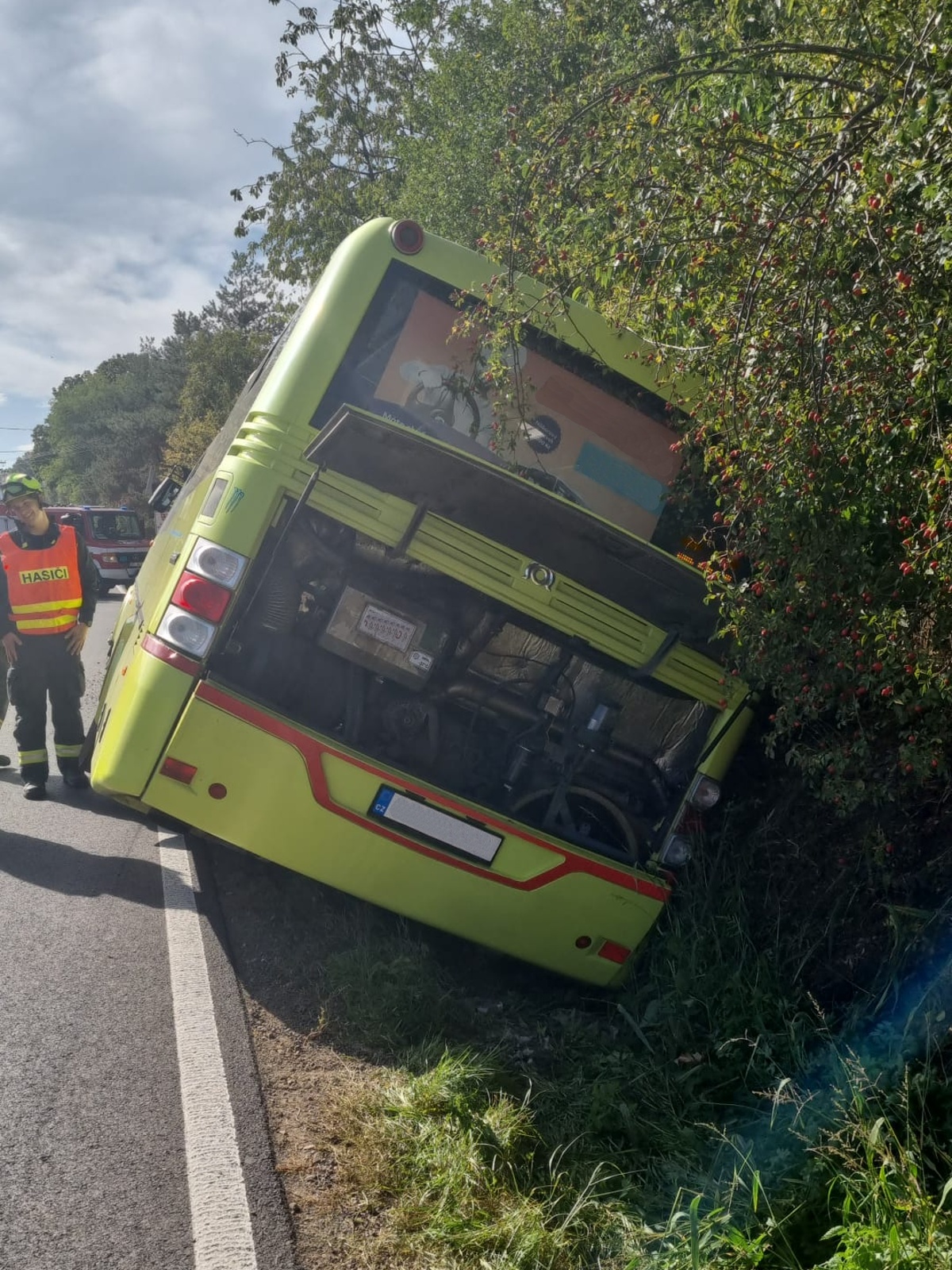 K dopravní nehodě autobusu, který poblíž obce Černín sjel pravými koly ze silnice třetí třídy, byla vyslána profesionální jednotka z centrální hasičské stanice Beroun spolu s dobrovolnou jednotkou obce Zdice.