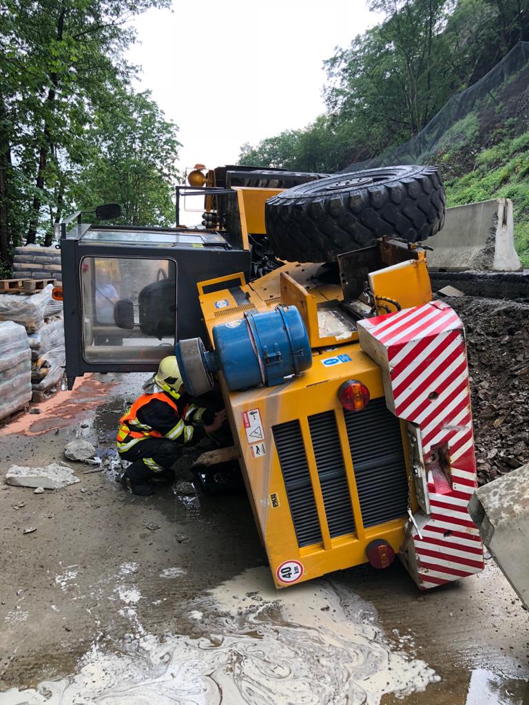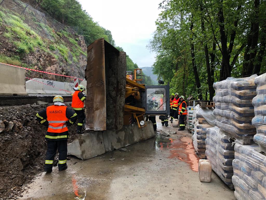 K dopravní nehodě čelního nakladače vyjížděly jednotky HZS Jílové a SDH Hradištko. Prvotní nahlášení hovořilo o tom, že stroj prorazil svodidla a spadl ze zhruba dvoumetrové výšky pod silnici. To se po příjezdu na místo potvrdilo. Osobu, která stroj obsluhovala, měla v péči zdravotnická záchranná služba.