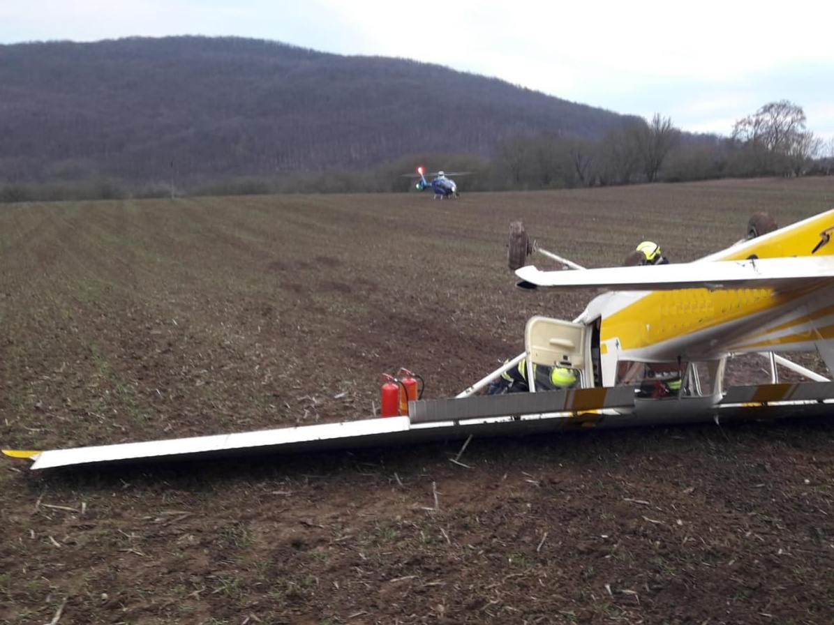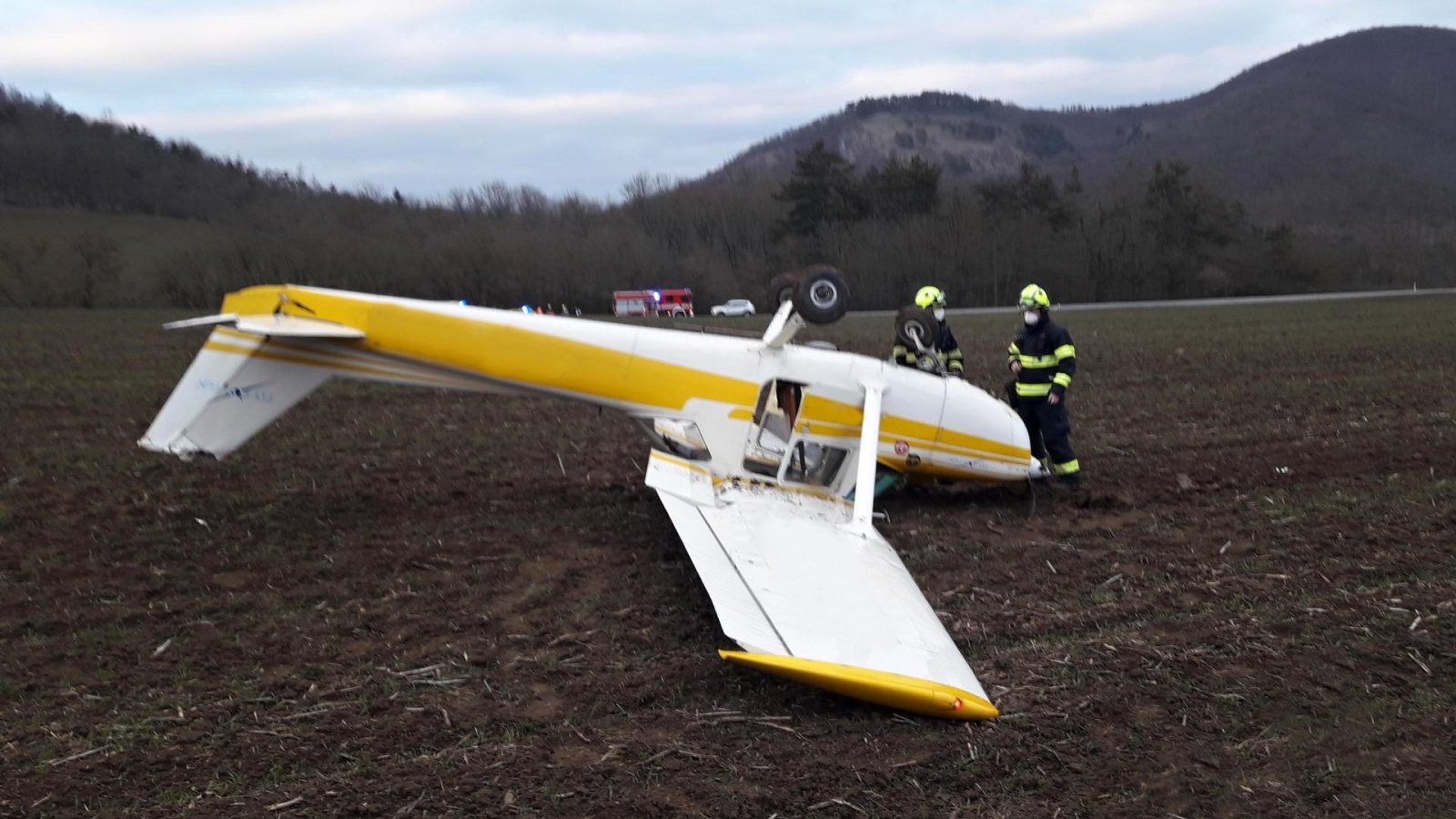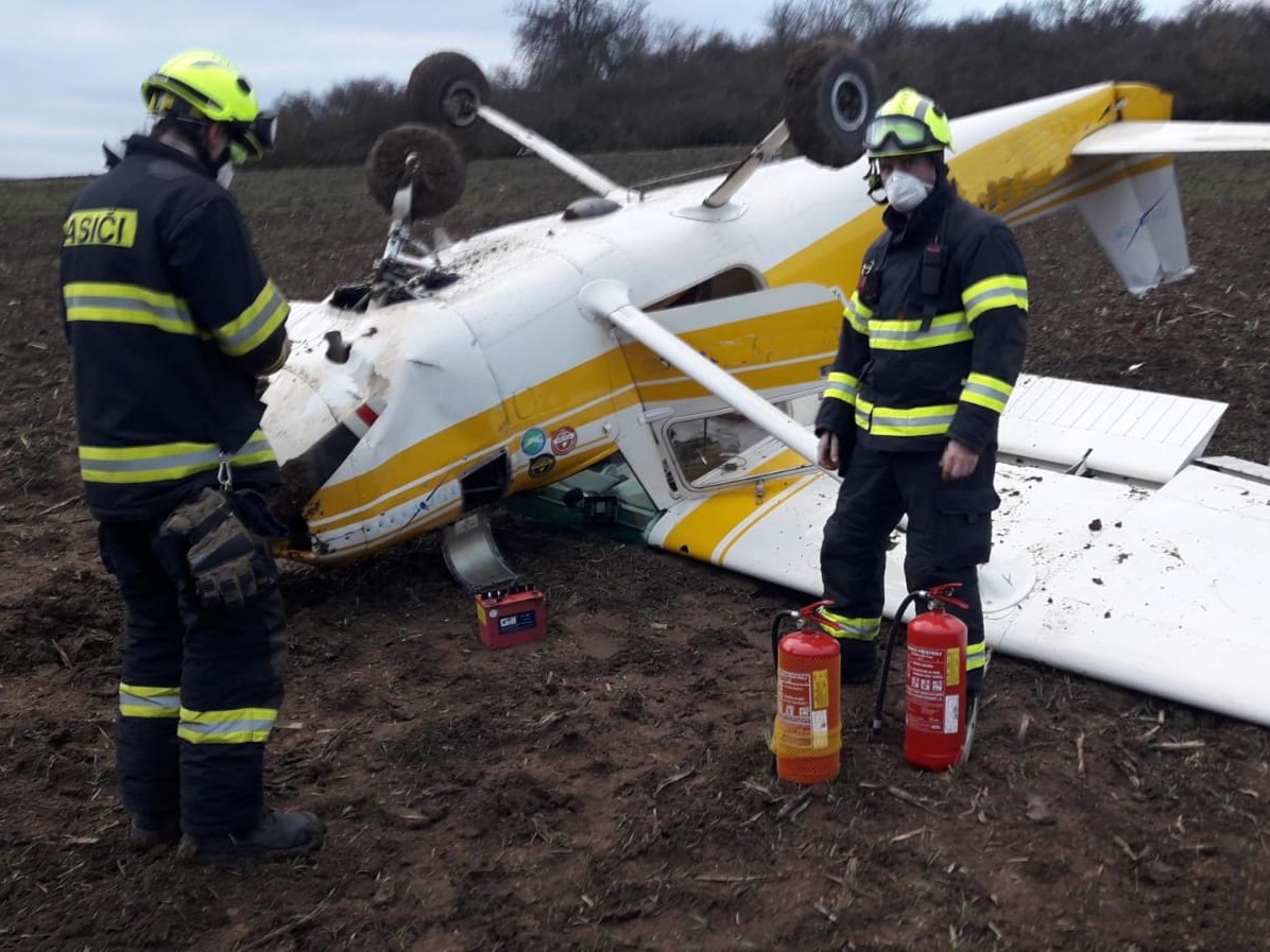 Volající uvedl, že jde o nehodu malého dvoumístného letadla a osoby, které v něm cestovaly, jsou venku. Operační důstojník k události poblíž silnice číslo 116 vyslal profesionální jednotku z Berouna. Po příjezdu hasičů na místo bylo upřesněno, že se stroj nachází na poli asi 70 metrů od silnice a leží koly nahoru. Dvě osoby bez viditelných zranění předala jednotka do péče přivolané posádce zdravotnické záchranné služby, která je následně převezla do nemocnice na preventivní prohlídku.