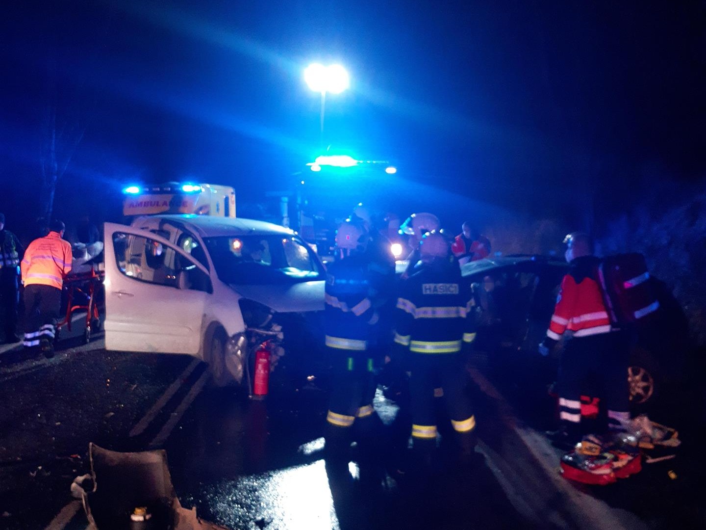 Jednotky provedeným průzkumem zjistily, že v jednom z vozidel cestovaly čtyři osoby a ve druhém tři. Všechny byly předány zraněné zdravotnické záchranné službě k dalšímu ošetření. Vyprošťovat hasiči na místě nemuseli, jedné osobě však pomohli z vozidla. Během vyšetřování dopravní nehody Policií ČR se na místo dostavil řidič nákladního automobilu, který uvedl, že je také účastníkem nehody a má poškozený návěs.
