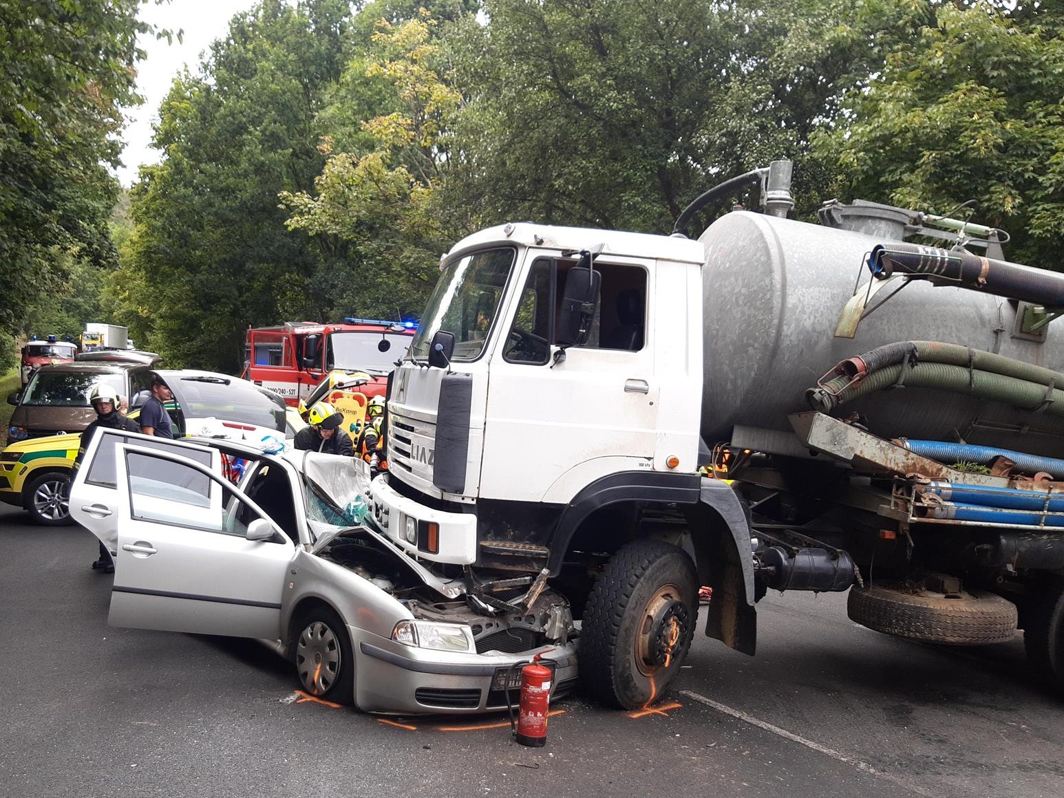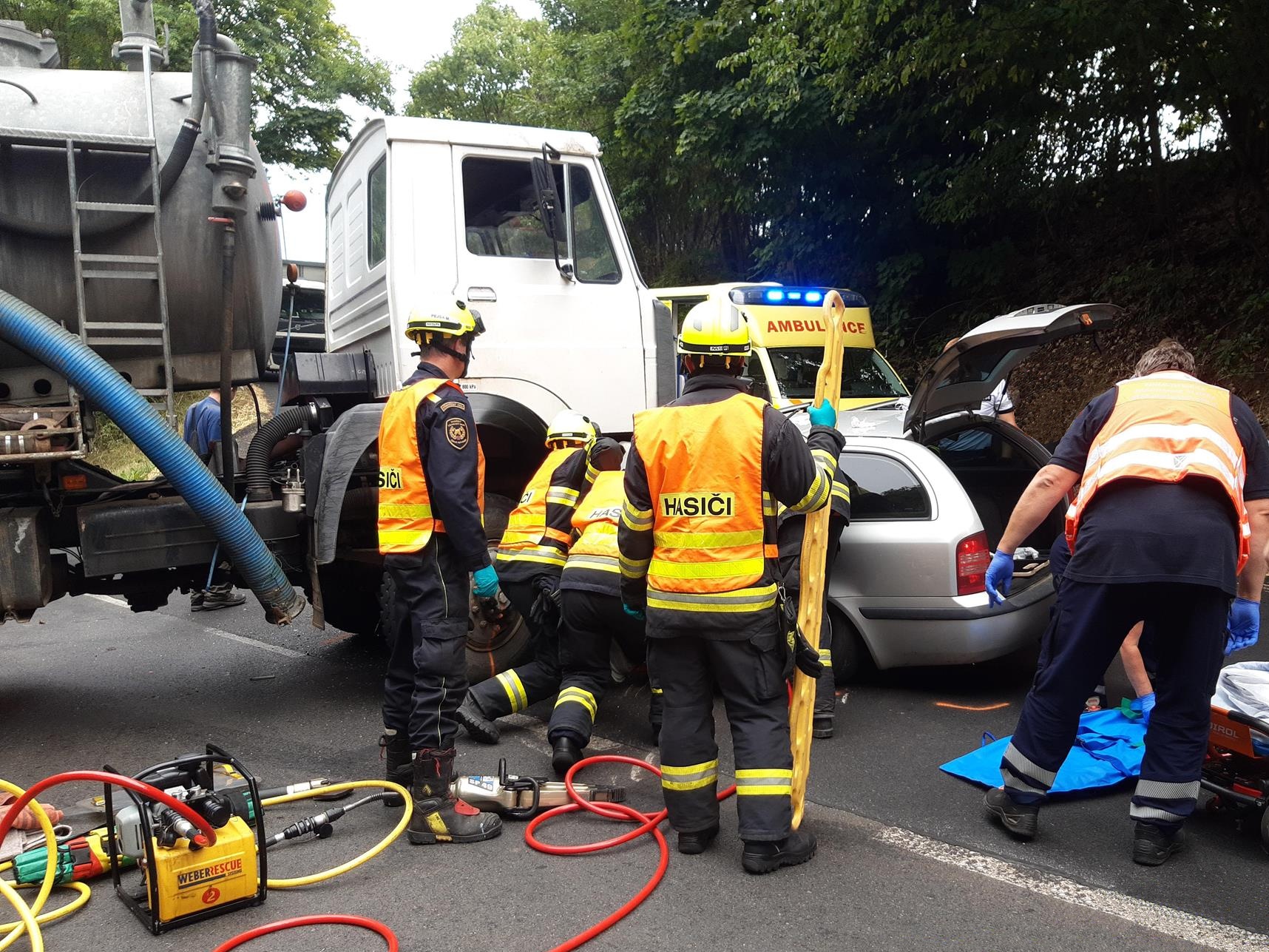 Hasiči zachránili zaklíněného řidiče z osobního auta pomocí hydraulického vyprošťovacího zařízení a předali ho na páteřové desce posádkám zdravotnické záchranné služby. Po nebytném ošetření byl pacient transportován do nemocnice přivolaným vrtulníkem.