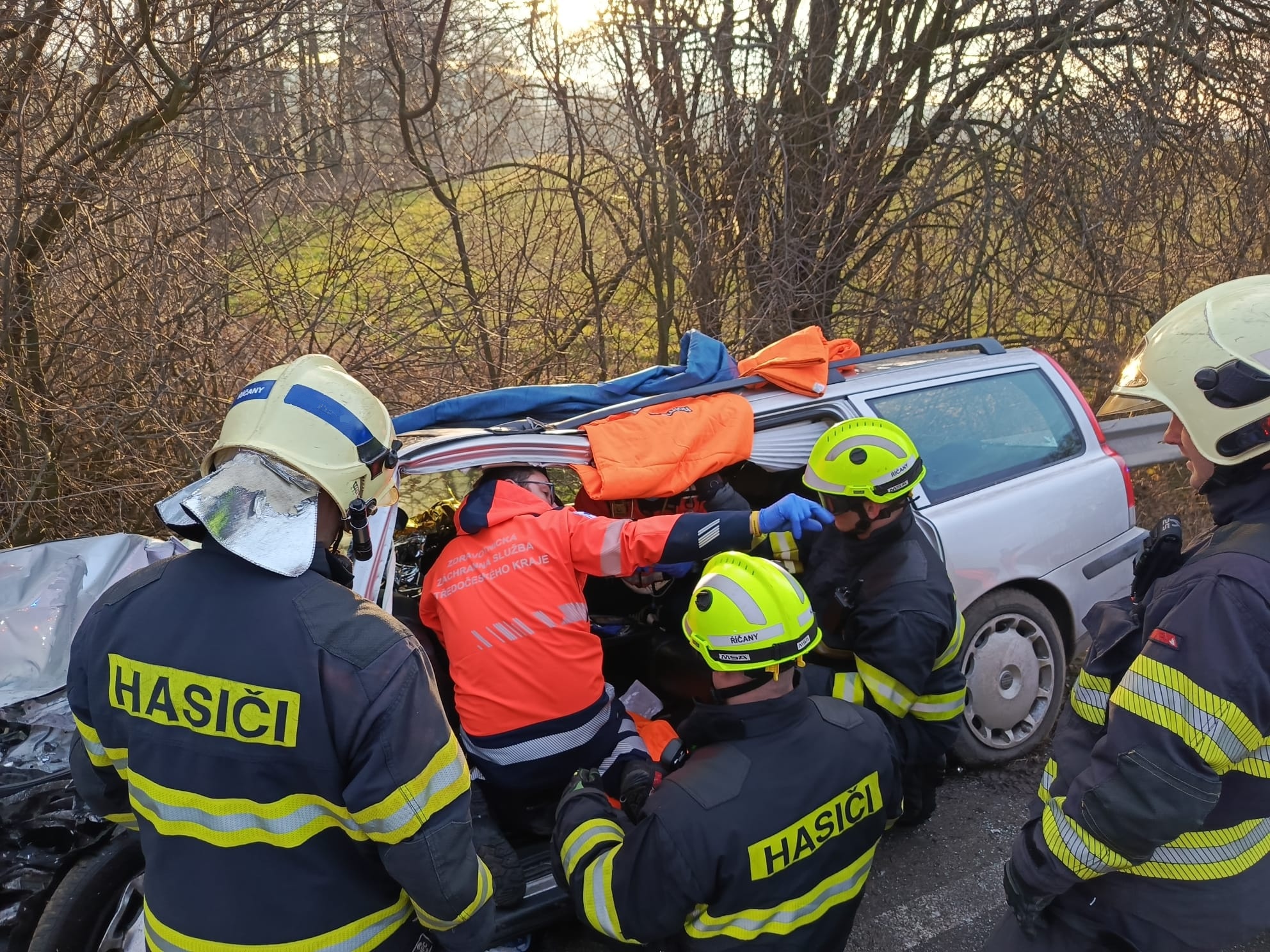 Akční ráno u Nučic, hasiči vyprostili dvě osoby po nehodě