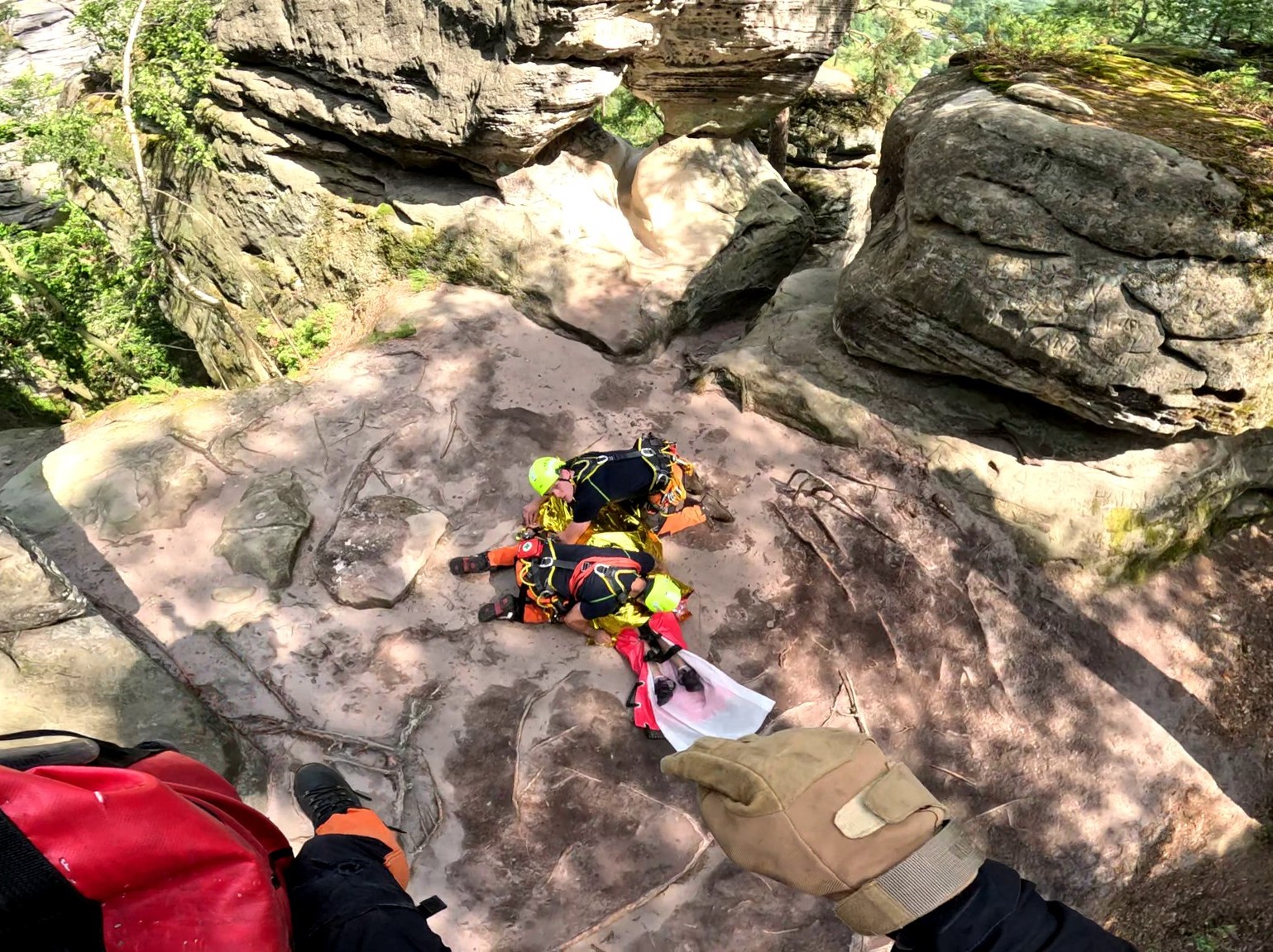 K incidentu došlo na červené turistické trase v srdci CHKO Český ráj. Na místo se ihned vydaly všechny složky integrovaného záchranného systému – profesionální hasiči, zdravotnická záchranná služba i policisté. Zasahující jednotka Hasičského záchranného sboru Středočeského kraje se musela ke zraněné osobě vydat pěšky, a to po náročném stoupání lesním terénem.