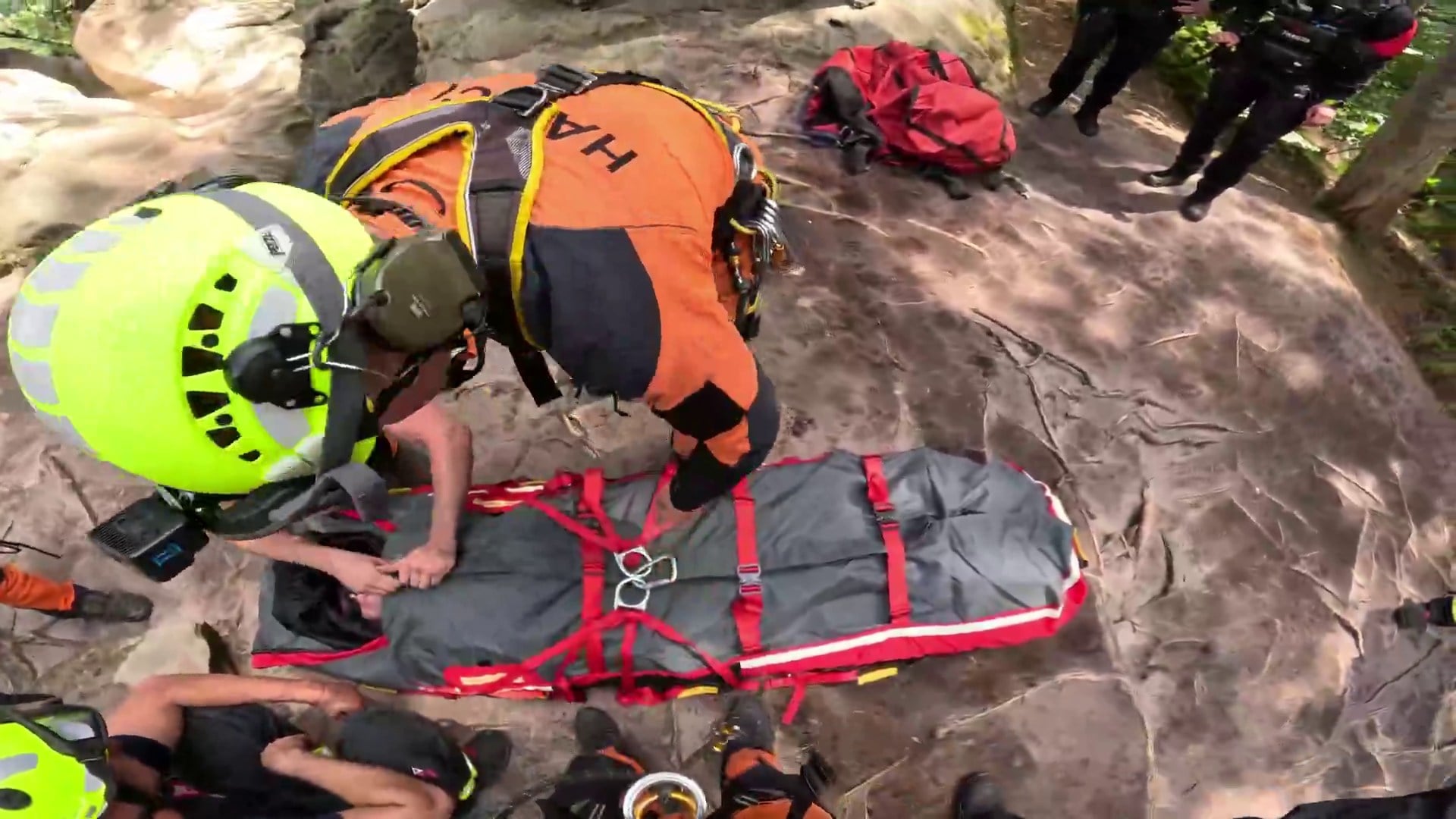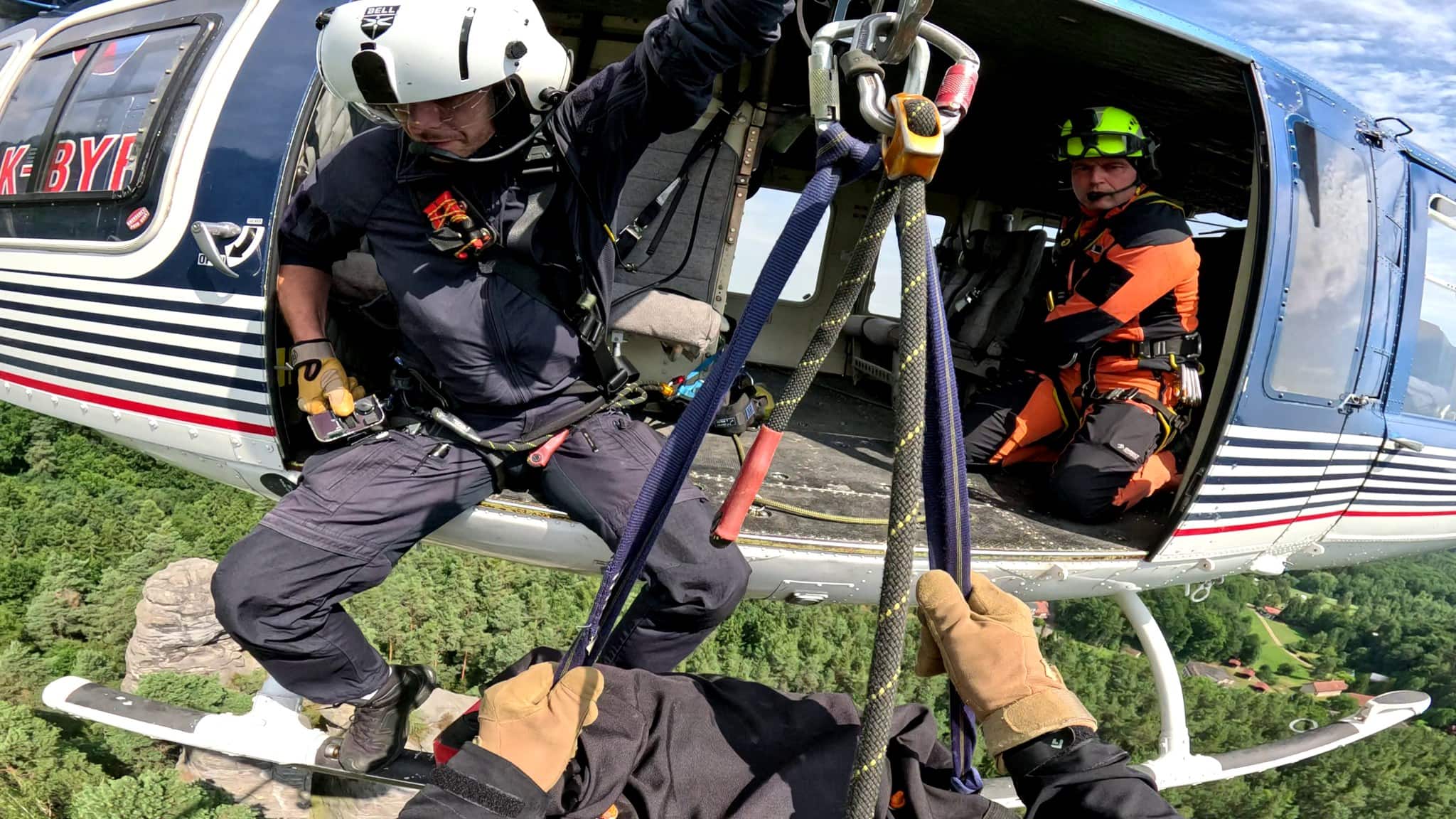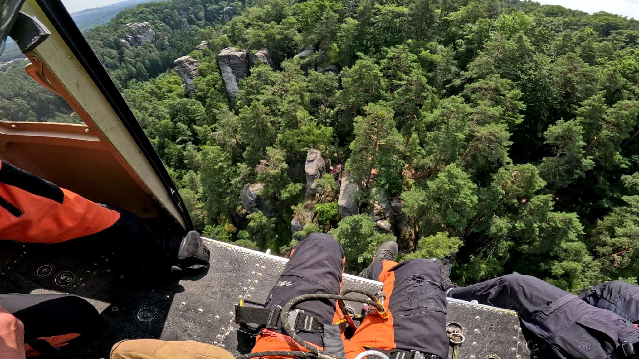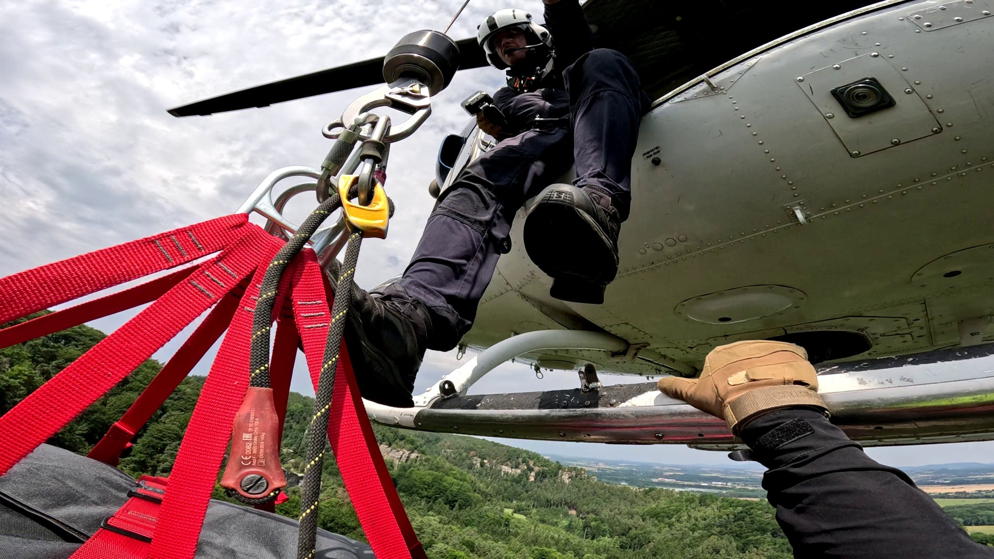 Dramatický zásah v Příhrazských skalách, vrtulník zachraňoval turistu v nouzi