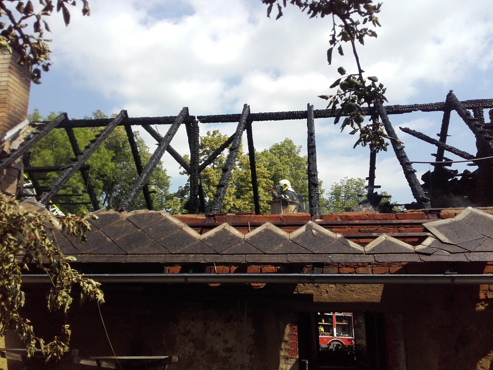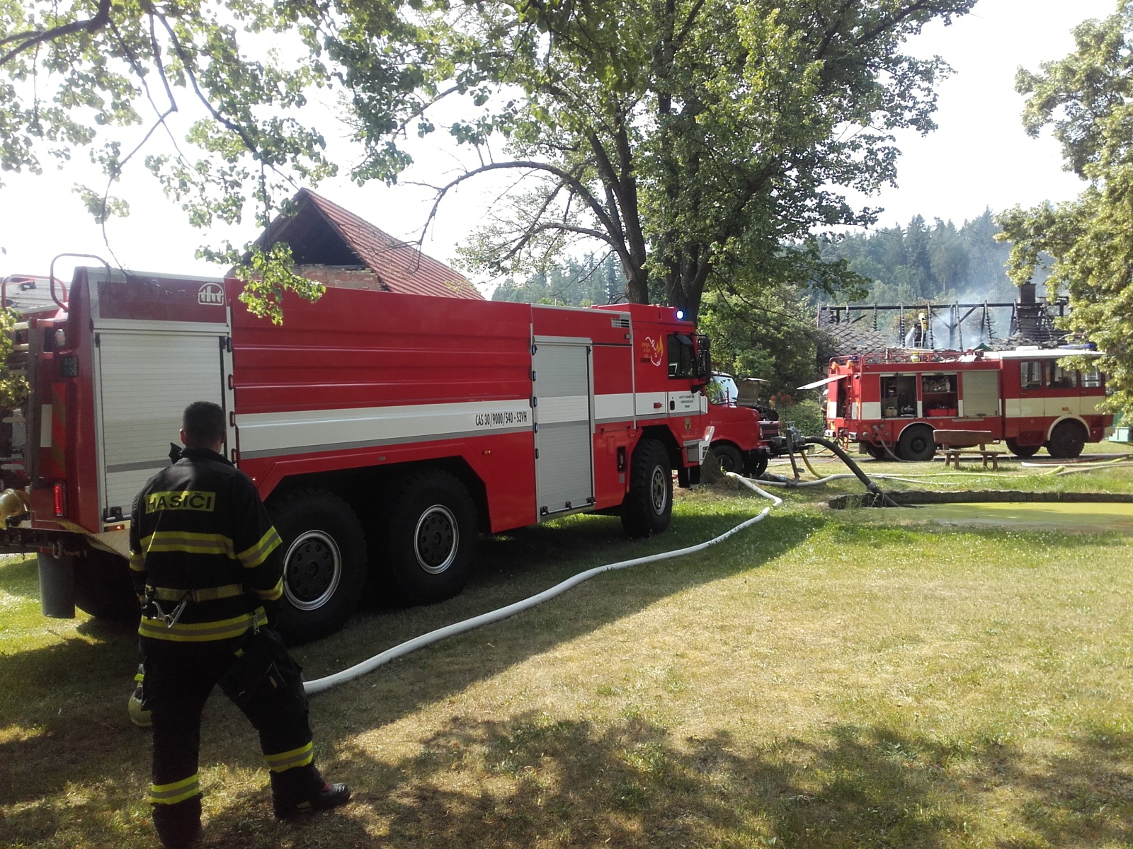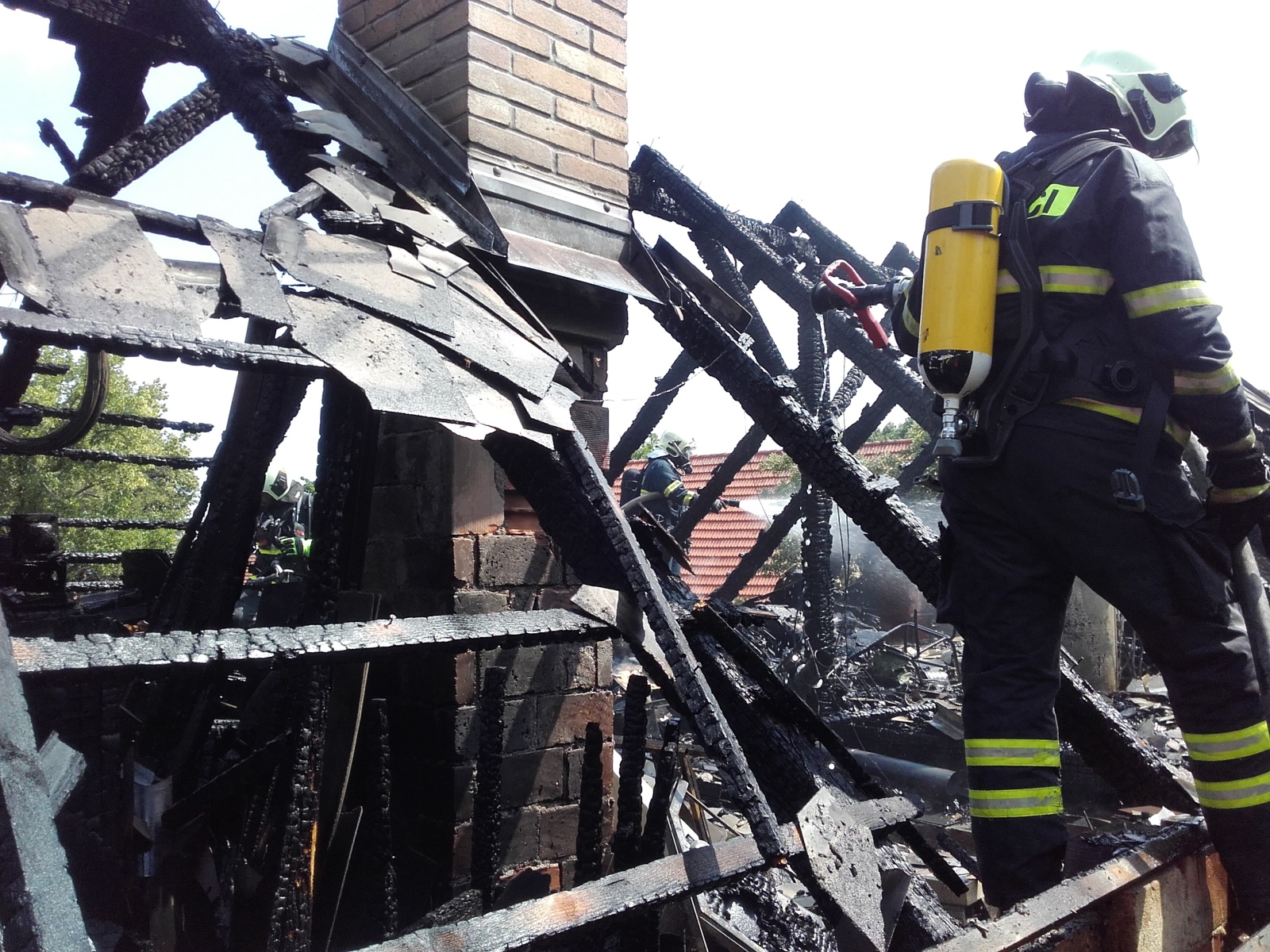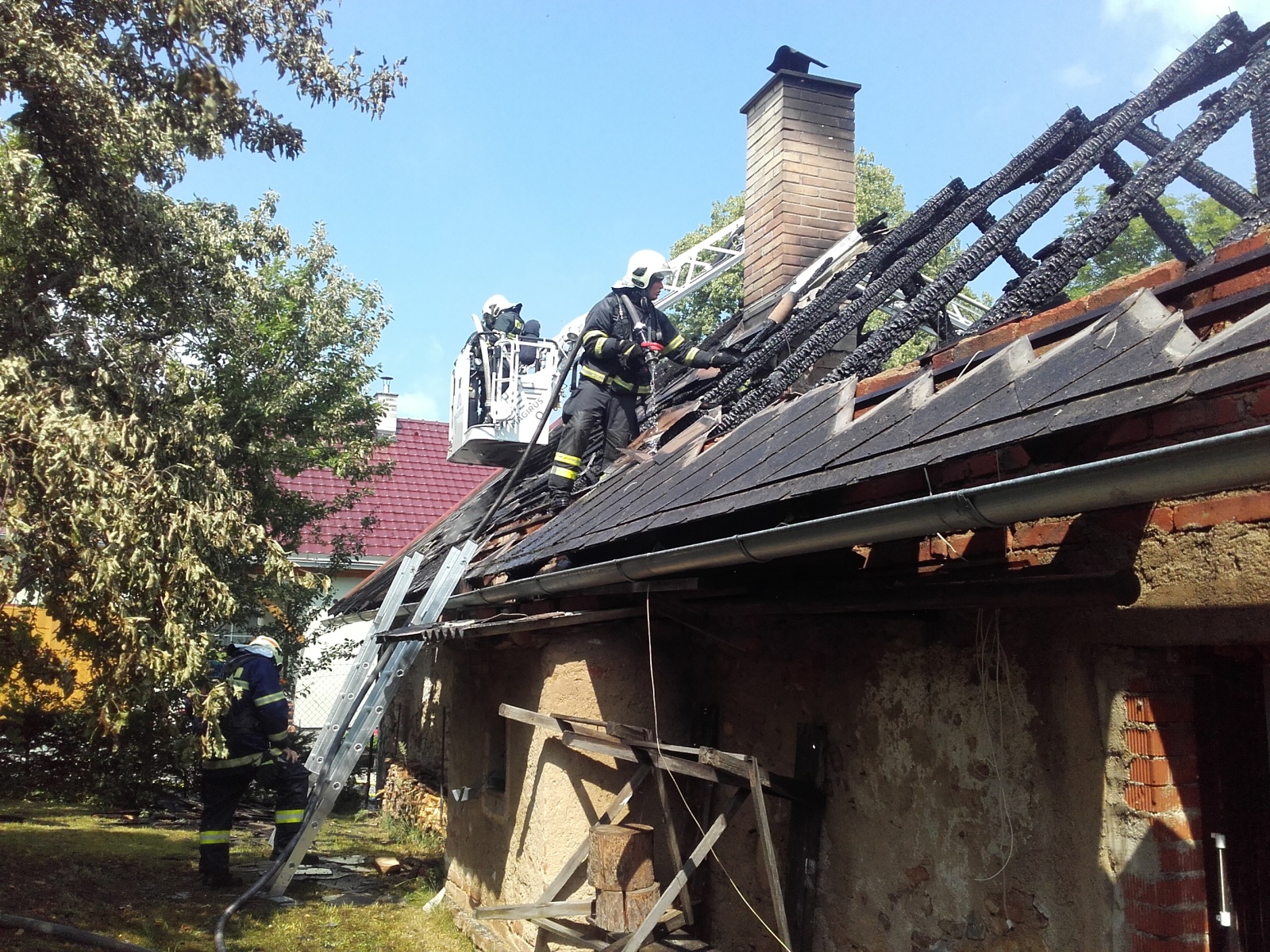 V době příjezdu prvních jednotek byla už střecha rekreačního objektu požárem zcela zasažena. Hasiči na likvidaci plamenů nasadili tři C proudy. Zároveň byla ustavena výšková technika, ze které se hasiči lépe dostali ke stržení střešní krytiny z eternitových šablon. Z hořícího domu se podařilo vynést dvě propanbutanové láhve, které bylo nutné ochlazovat.