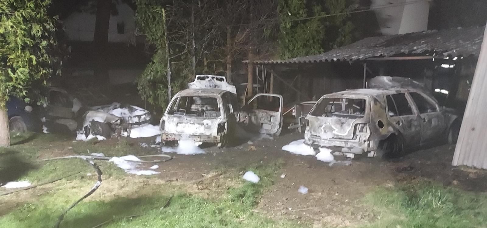 První z dvojice nočních požárů byl na tísňovou linku hasičů oznámen pár minut před půl jedenáctou v úterý večer. Oznamovatel uvedl, že na místě hoří několik vozidel a slyší výbuchy. Operační důstojník proto na místo vyslal kromě profesionálních hasičů z Berouna také dobrovolné hasiče z Chyňavy. Po příjezdu jednotek k události bylo potvrzeno, že požár zasáhl celkem osm osobních automobilů.