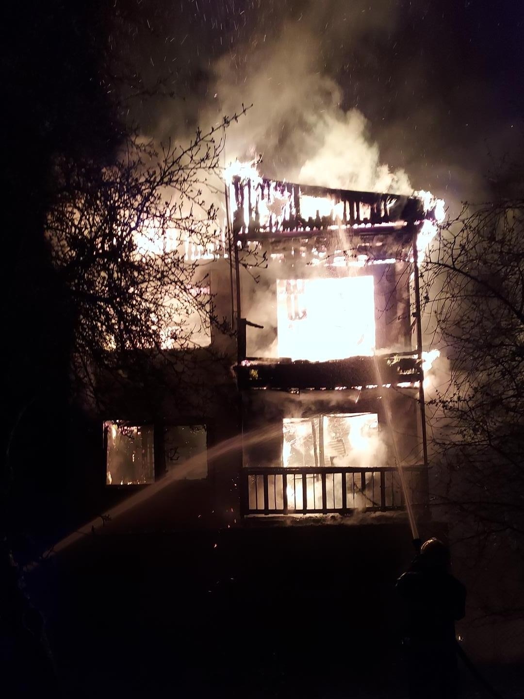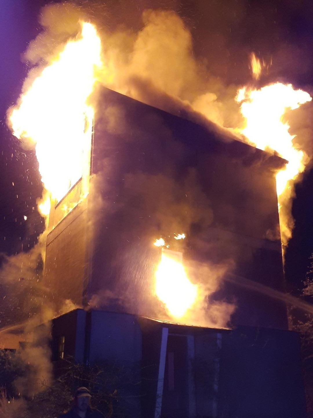 Druhý požár byl středočeským hasičům oznámen ve středu v jednu hodinu v noci. Oznamovatel uvedl, že hoří rodinný dům, který je požárem zcela zasažen. K události byli vysláni profesionální hasiči z Berouna a Kladna spolu s dobrovolnými hasiči obcí Chyňava a Lhota. Po příjezdu na místo bylo potvrzeno, že dvoupatrový dům o půdorysu 10x10 m je celý v plamenech.