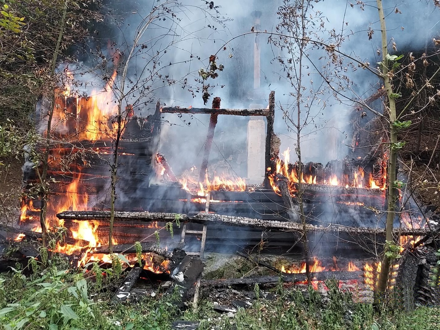 K druhé hořící chatě postupně dojely i ostatní jednotky, které už nebyly potřeba na místě prvního zásahu. Hasiči dostali oheň rychle pod kontrolu za pomoci dvou vodních proudů. K likvidaci požáru byly použity také hasicí hřeby, které hasičům pomáhají s hašením v konstrukcích staveb. Stejně jako u první chaty, i zde následovalo vyhledávání a dohašování skrytých ohnisek a kontrola termokamerou.