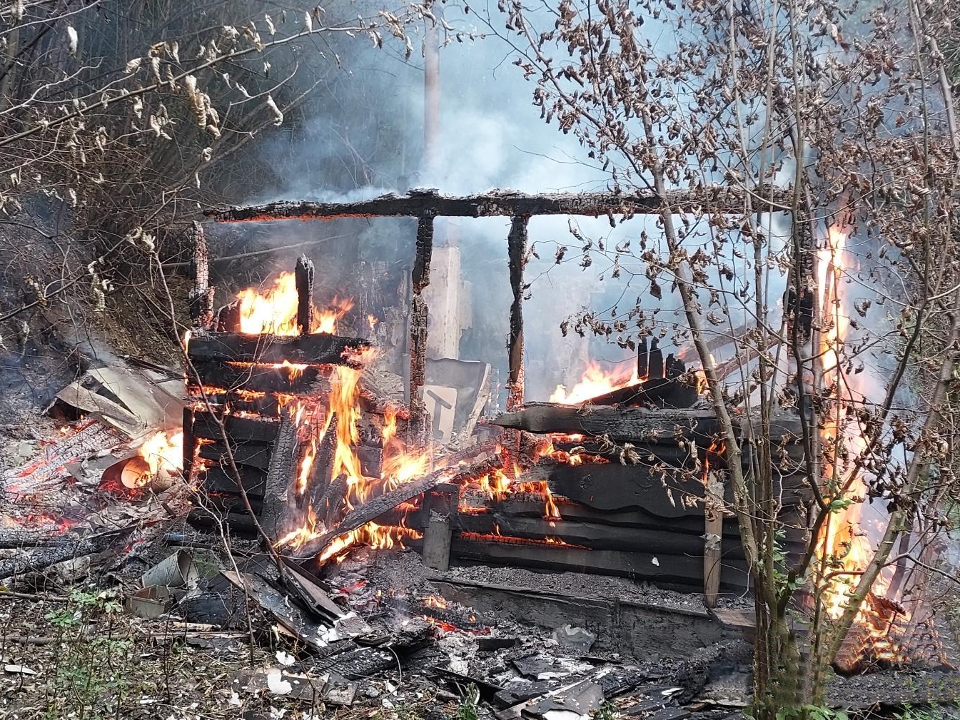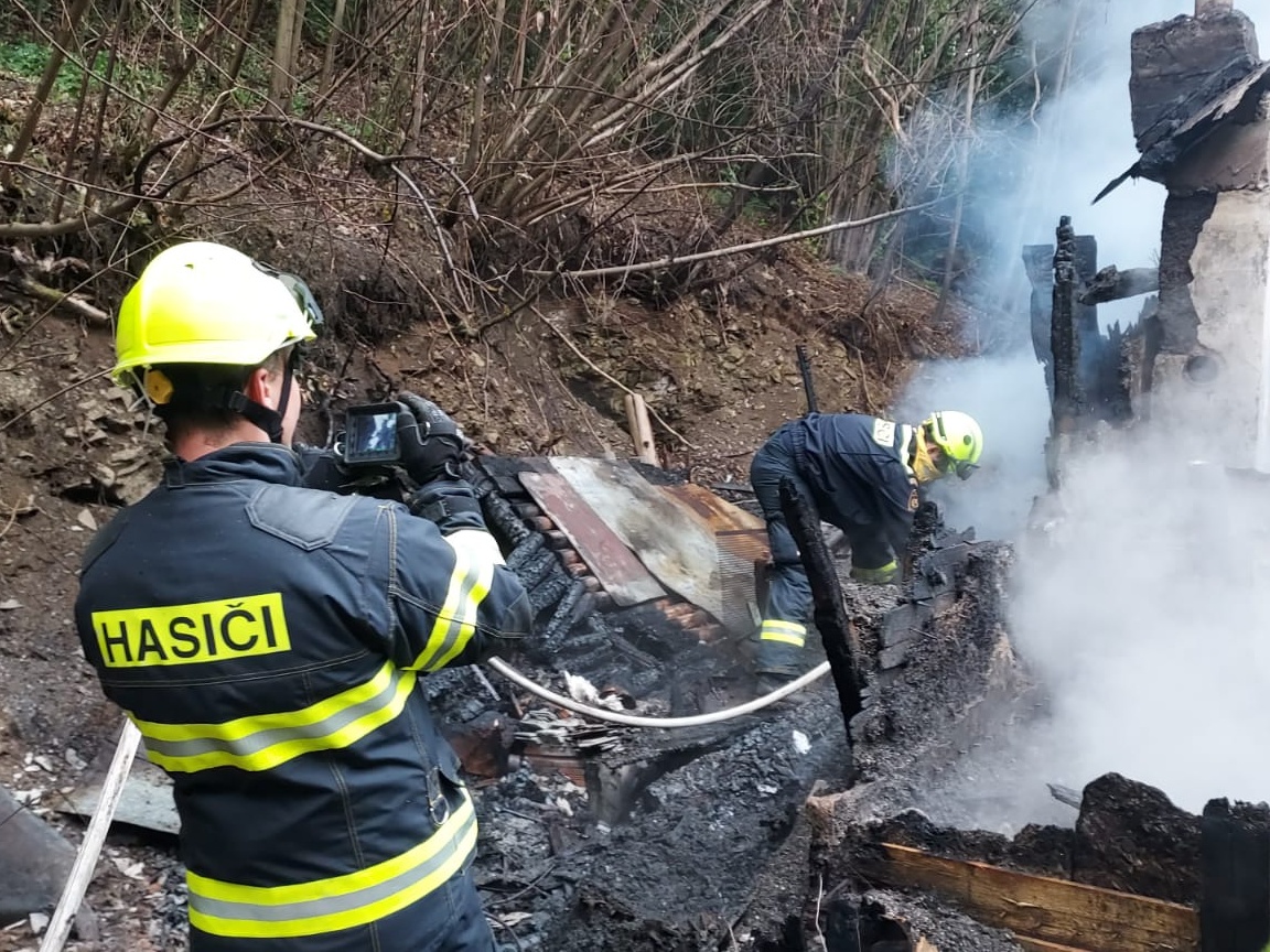 Po příjezdu na místo bylo zjištěno, že chata o půdorysu 5x5 metrů je požárem zcela zasažená a zbyla z ní pouze plechová střecha, kterou hasiči na místě ochlazovali. Následně bylo nutné vyhledat a dohasit skrytá ohniska. Požár se podařilo dostat pod kontrolu za několik minut od příjezdu k události.