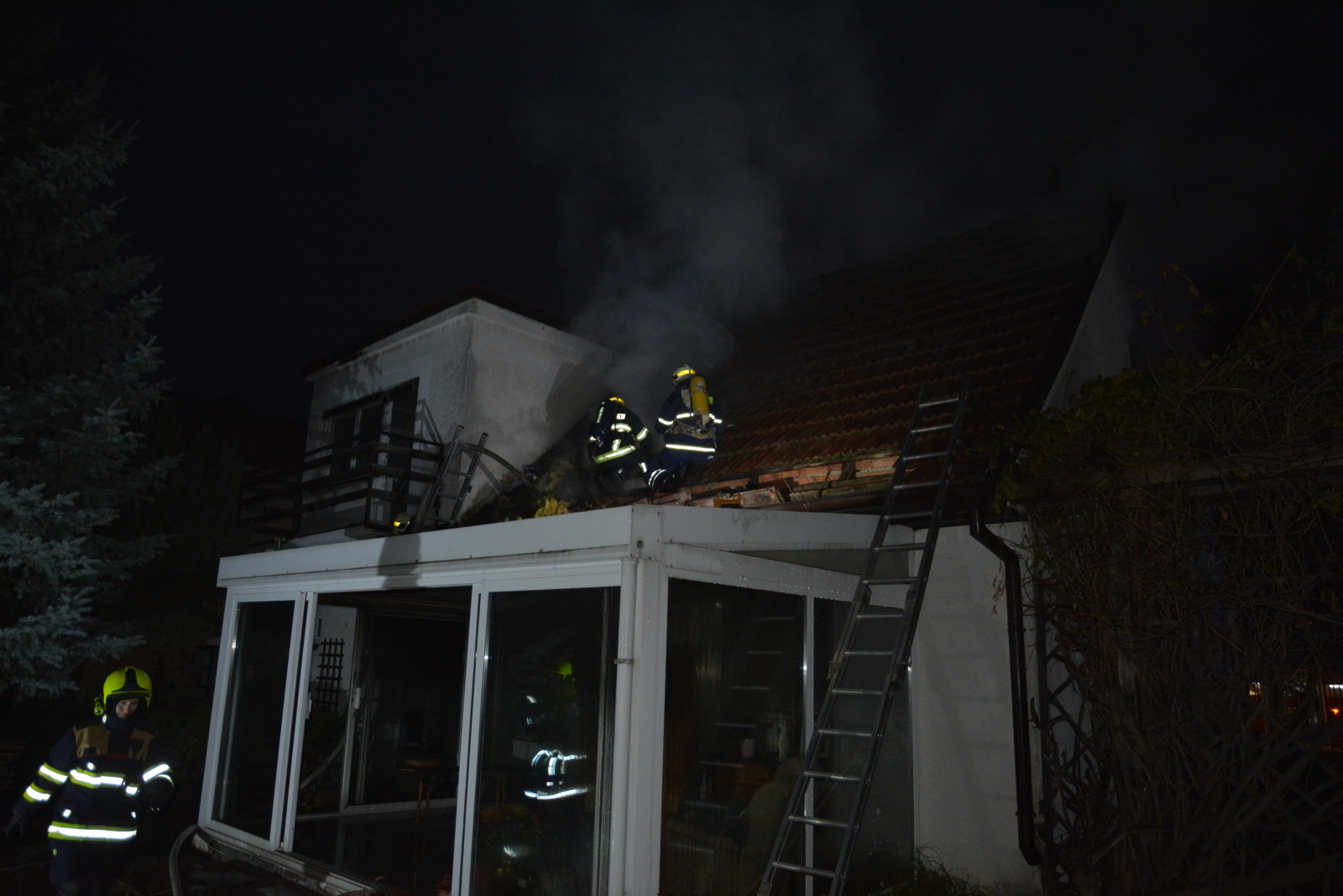 První jednotka dorazila na místo devět minut od odhlášení události, kdy byla požárem zasažena přízemní část rodinného domu. Plameny se však přes dřevěné stropy dostaly přes první patro až do střešní konstrukce pod taškovou krytinu. Oba obyvatelé domu byli mimo objekt v péči zdravotnické záchranné služby, protože byli intoxikováni zplodinami hoření a majitelka se kromě toho při snaze o hašení i popálila. Obě osoby převezla záchranka k dalšímu ošetření do nemocnice.