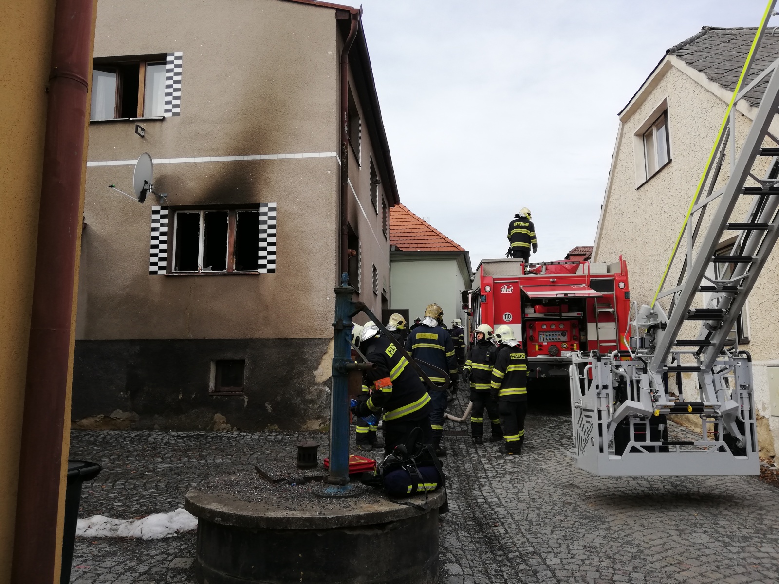 Současně bylo nahlášeno, že na místě se nacházejí popálené osoby, a tak byla povolána také zdravotnická záchranná služba. K události vyjela profesionální jednotka ze stanice Příbram a jako posily dobrovolné jednotky obcí Březnice, Rožmitál pod Třemšínem a Chrást.