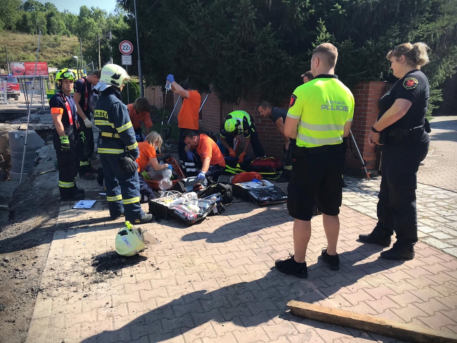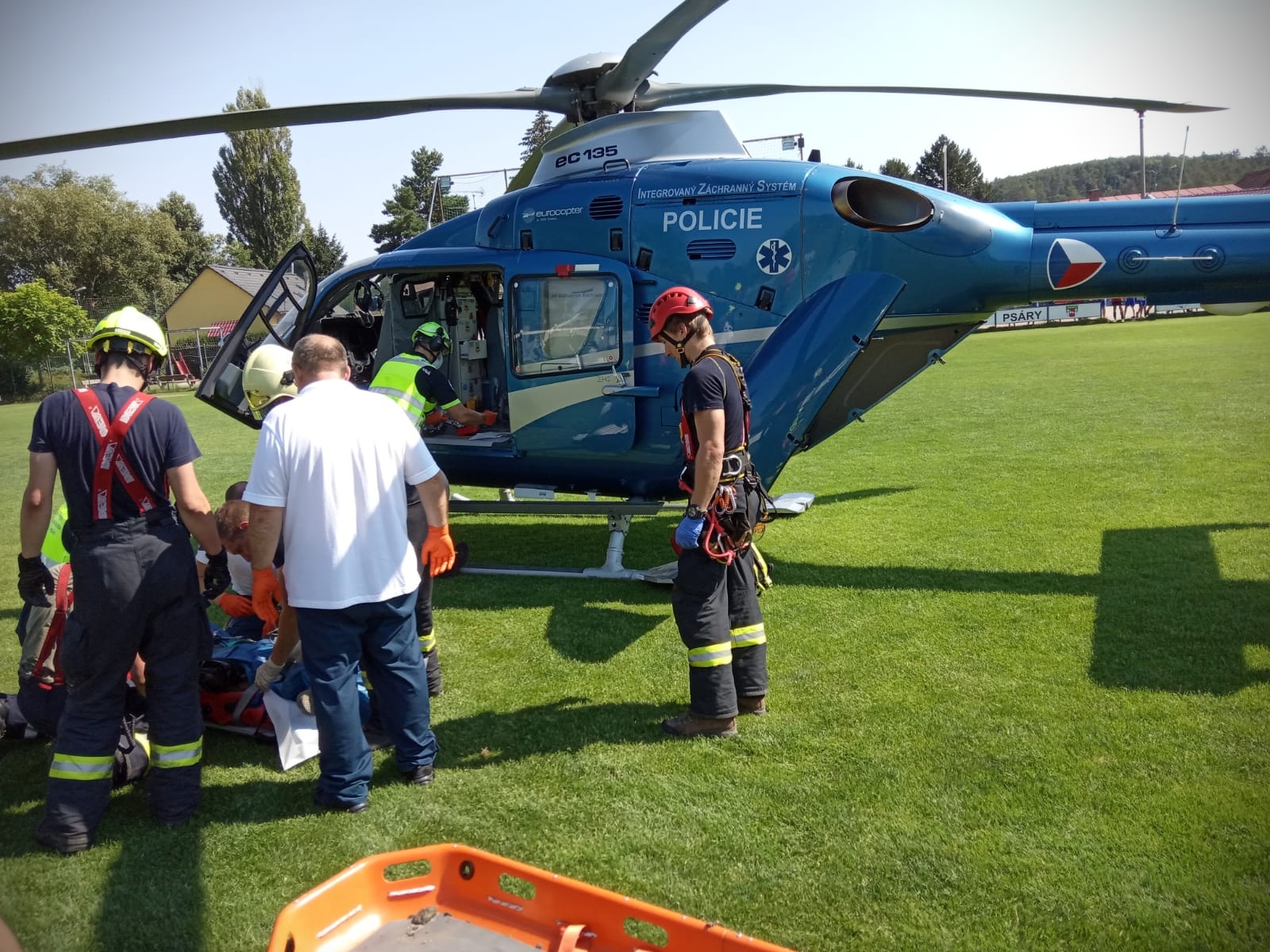 Po téměř dvaceti minutách byla resuscitace úspěšná a pacient byl přepraven na místní fotbalové hřiště k vrtulníku letecké záchranné služby, který pacienta transportoval do motolské nemocnice v Praze. Druhého dělníka s lehkým zraněním ošetřila záchranná služba na místě.