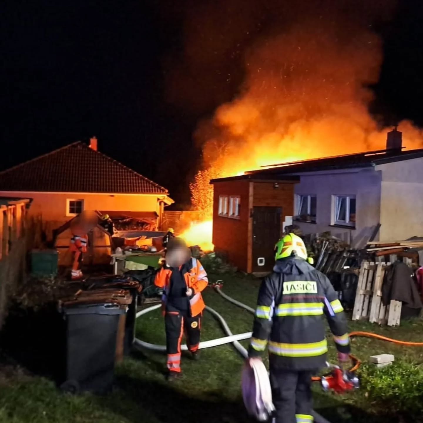 V Nové Vsi pod Pleší zasahovaly jednotky profesionálních i dobrovolných hasičů u požáru dílny. Z objektu vynesly sedm propanbutanových lahví, které následně monitorovaly termokamerou a ochlazovaly. Požár se podařilo dostat pod kontrolu krátce po 18. hodině a zásah pokračoval dohašováním a rozebíráním konstrukcí.