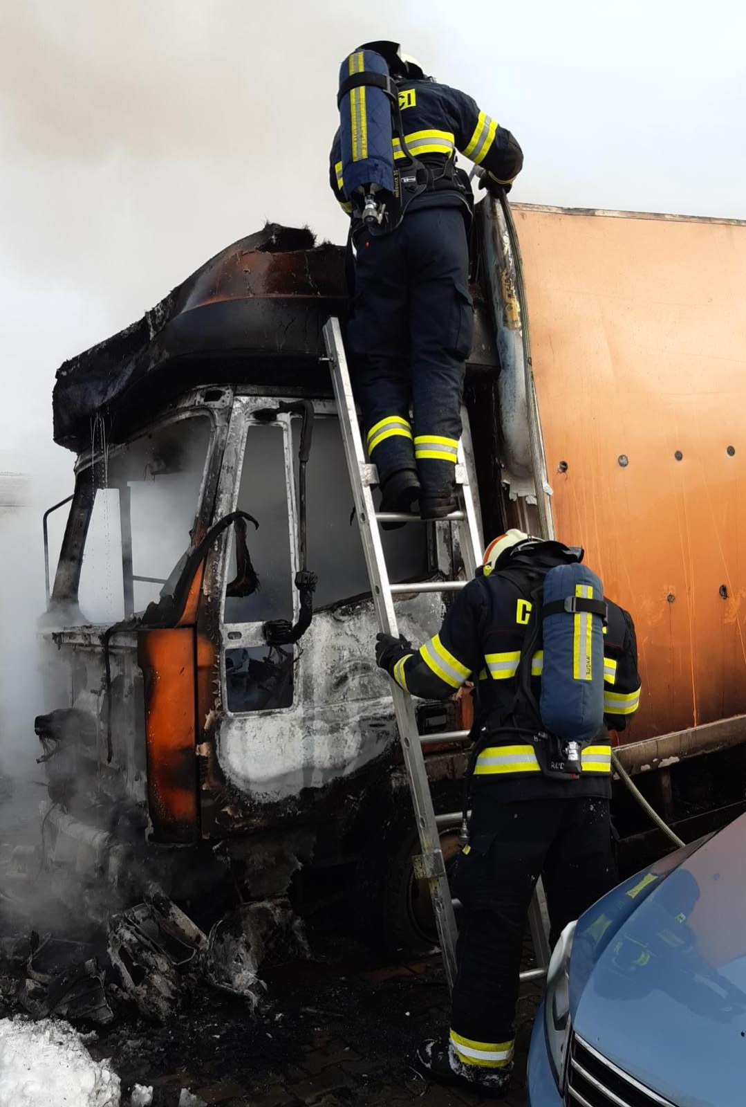 V sobotu 16. ledna v 12.41 hodin byl na tísňovou linku Hasičského záchranného sboru Středočeského kraje ohlášen požár nákladního automobilu v areálu logistické společnosti v Chrášťanech v okrese Praha-západ.