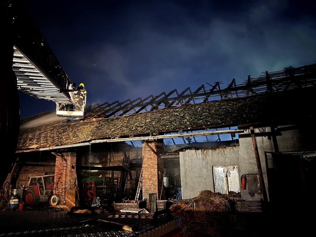 Krátce před třetí hodinou ráno zasahovali hasiči u požáru stodoly v Mečeříži. Uvnitř byla zaparkovaná zemědělská technika a plameny se držely v konstrukci objektu. Velitel zásahu využil dron s termovizní kamerou, který pomohl odhalit nejteplejší místa. Lokalizace byla nahlášena ve 03:57, poté začalo dohašování skrytých ohnisek.