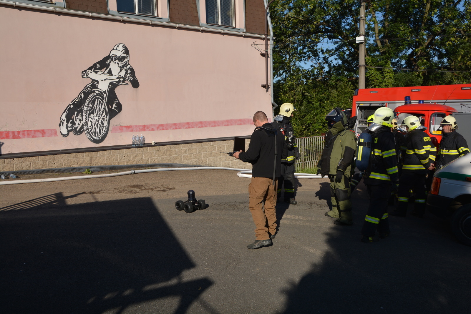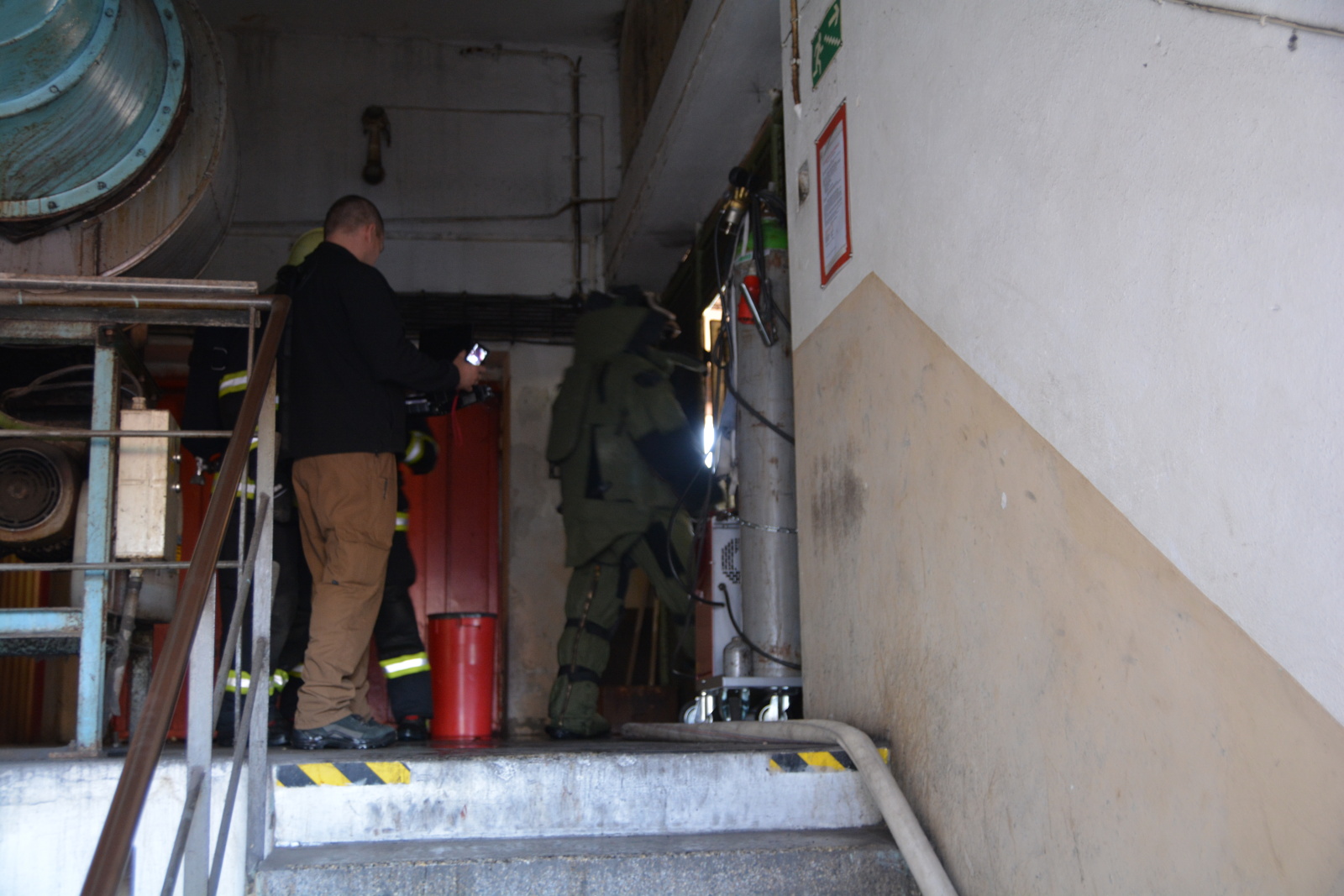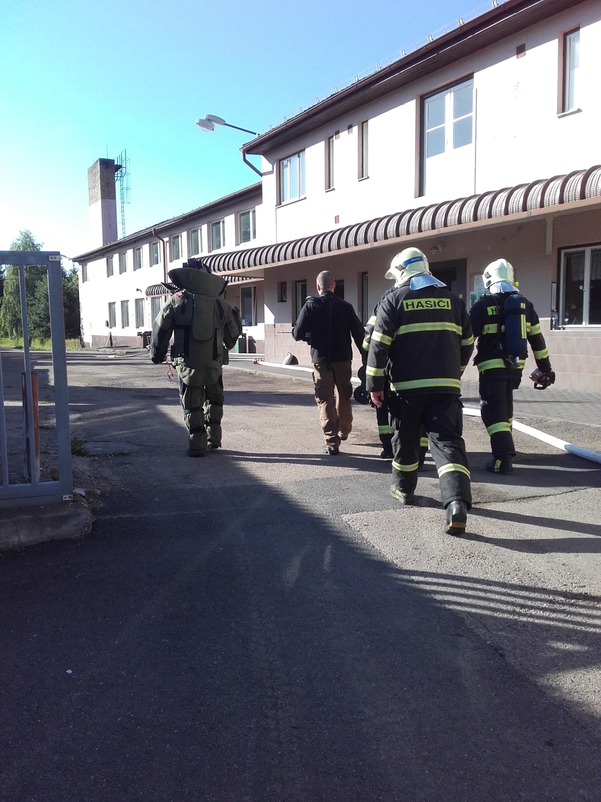 Časně ráno, 3.7. 2018 byla na místo povolána výjezdová skupina Pyrotechnické služby Policie ČR. Po šesté hodině plamenné hoření samovolně ustalo. Technik ve speciálním ochranném obleku provedl měření povrchu tlakové láhve termokamerou. Vzhledem k příznivé teplotě mohla být láhev transportována z dílny a přemístěna nejprve do provizorní vodní lázně a následně do nedalekého rybníka. Zásah hasičů byl ukončen předáním řediteli firmy v úterý hodinu před polednem.