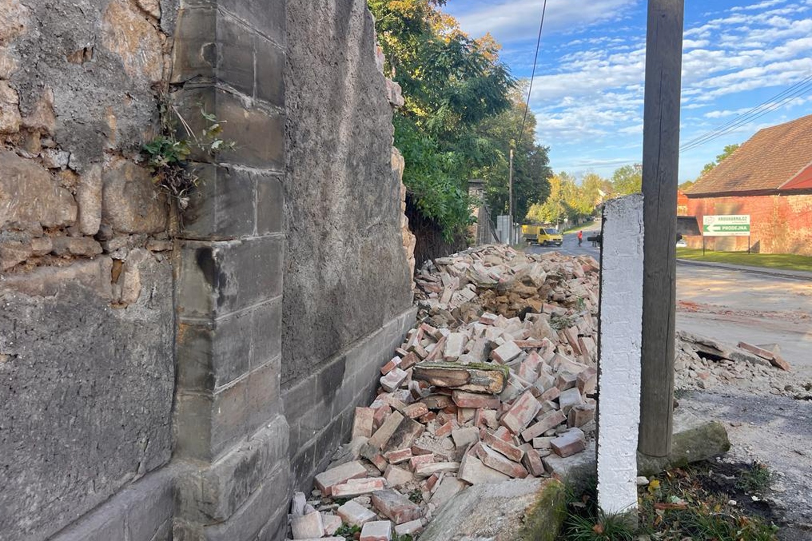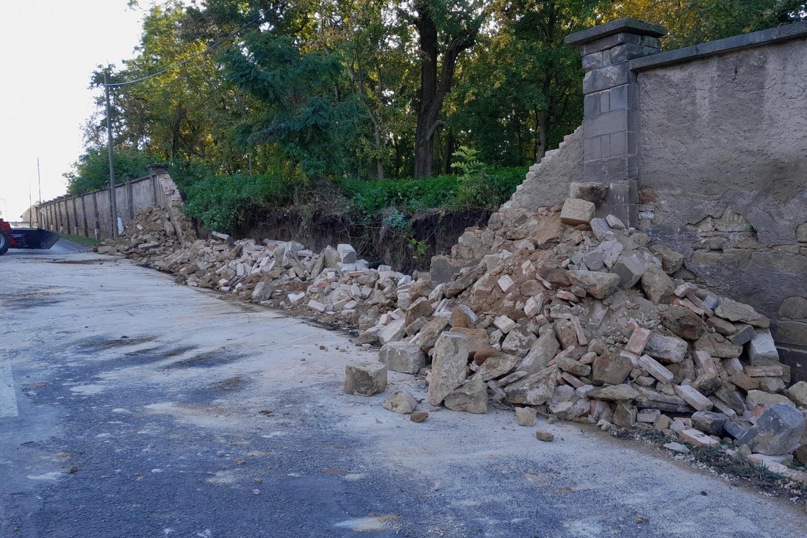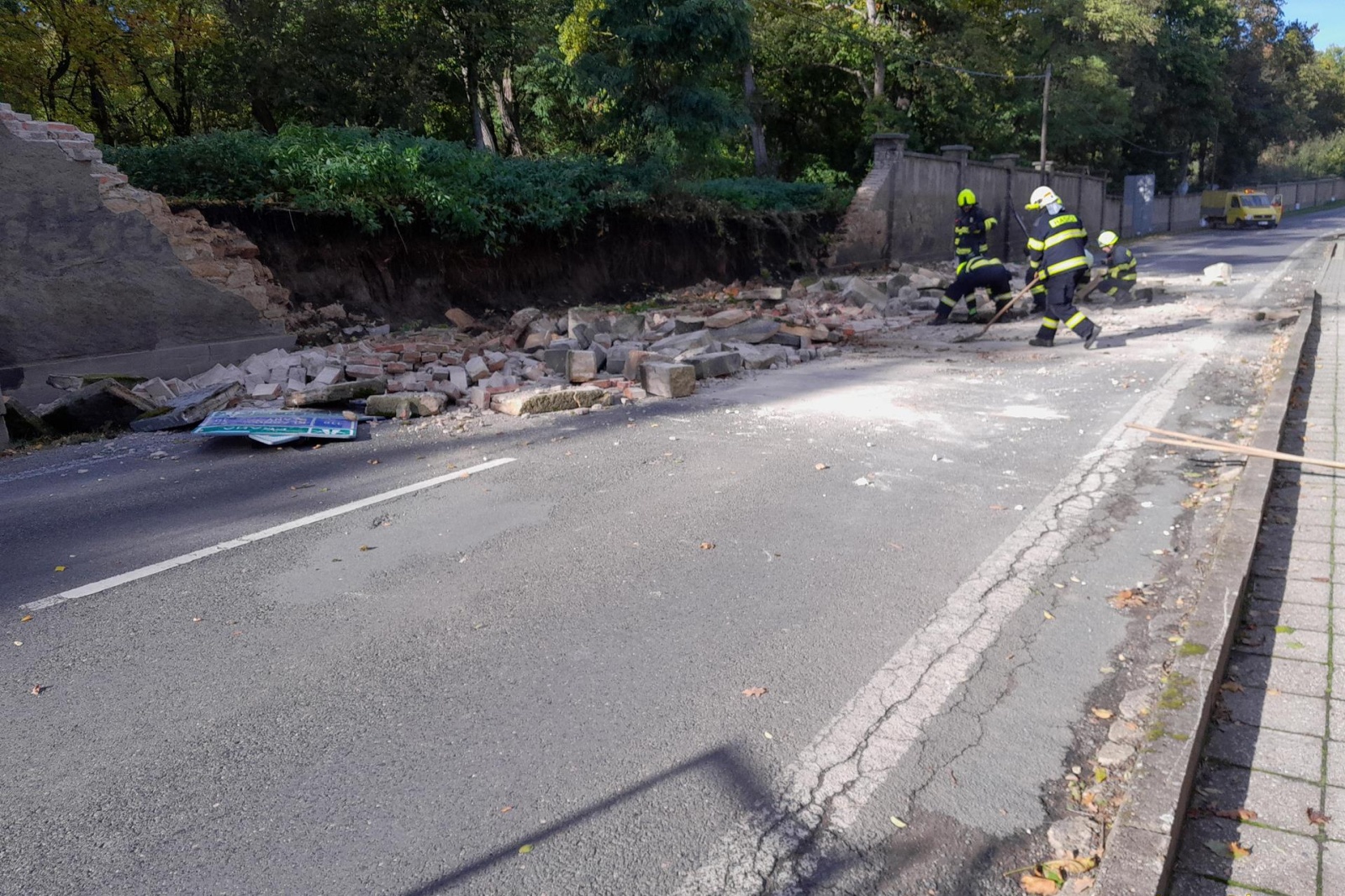 V neděli 22. října ve dvě hodiny po poledni oznámil starosta Šlapanic na tísňovou linku HZS Středočeského kraje, že v obci došlo ke zřícení velké části zdi podél silnice číslo 118.