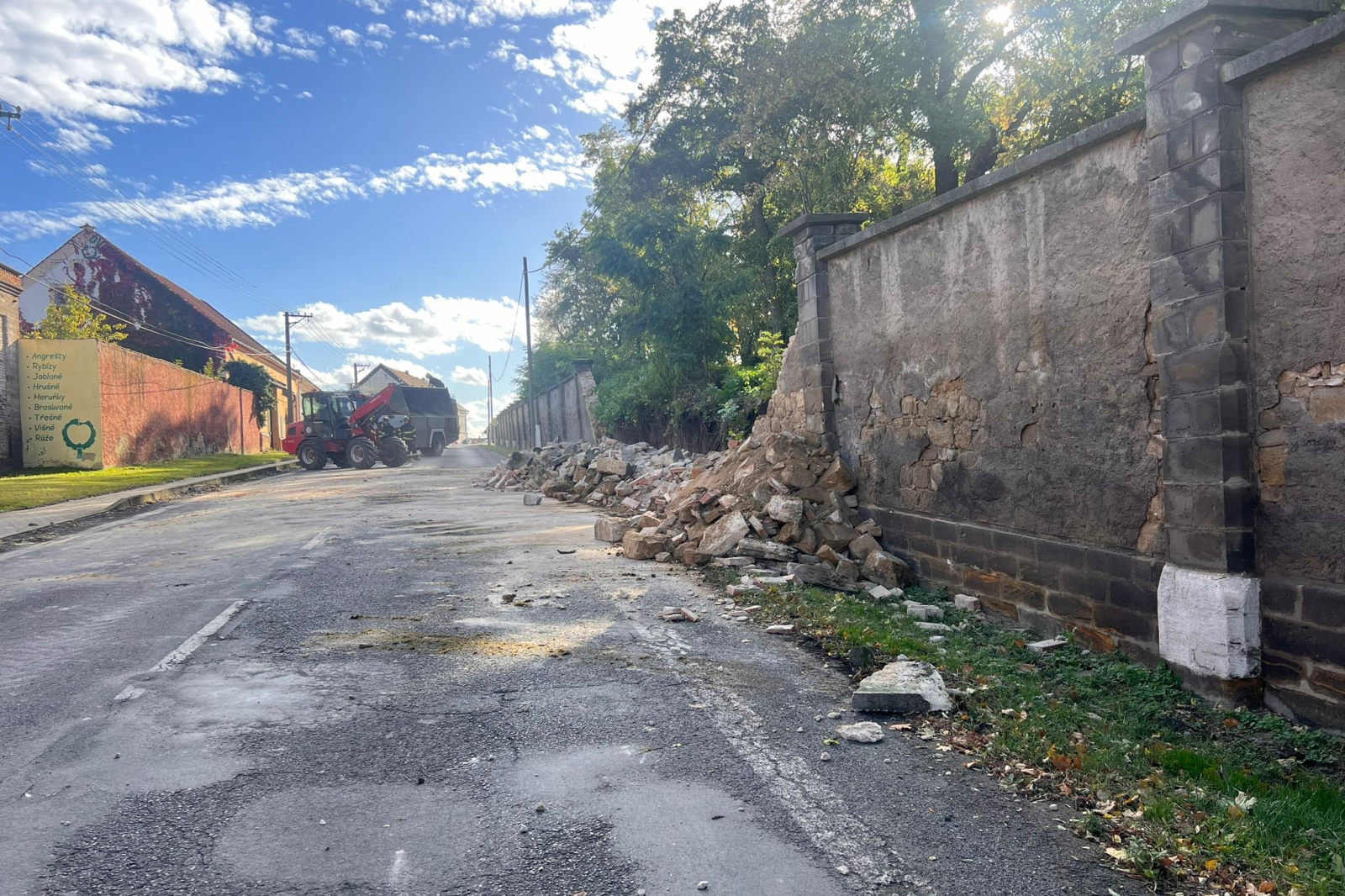 Starosta obce sehnal nakladač, kterým bylo možné odstranit sutiny ze silnice a přihrnout je ke stranám. V rámci možností se do odklízení pustili s lopatami i hasiči. Tím bylo zároveň potvrzeno, že se při zřícení zdi nikdo nevyskytoval v těsné blízkosti, takže nedošlo k žádnému zranění osob.