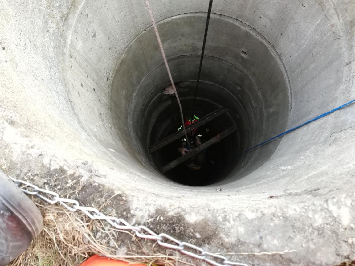 Po příjezdu velitel zjistil, že za dětmi obětavě skočil muž, který je do příjezdu hasičů držel ve vodě nad hladinou. Hasič – lezec byl pomocí speciální trojnožky spuštěn do studny. Zachránil nejprve holčičku s chlapcem a poté i dospělého muže.