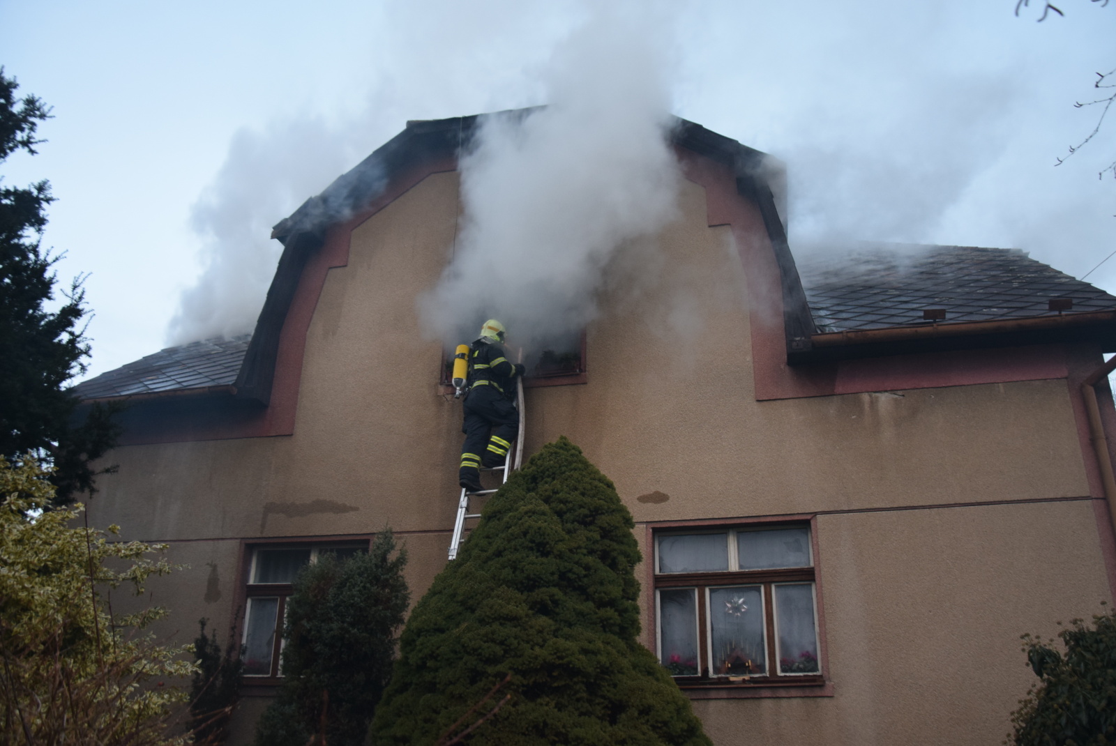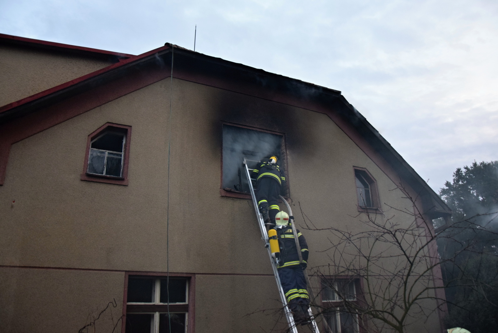 Na Nový rok patnáct minut po sedmé hodině byl na tísňovou linku Hasičského záchranného sboru Středočeského kraje ohlášen požár patrového rodinného domu v Rožmitálské ulici v Příbrami. Hasiči tak zahájili rok 2018 komplikovaným zásahem, u kterého nebylo možné ustavit výškovou techniku.